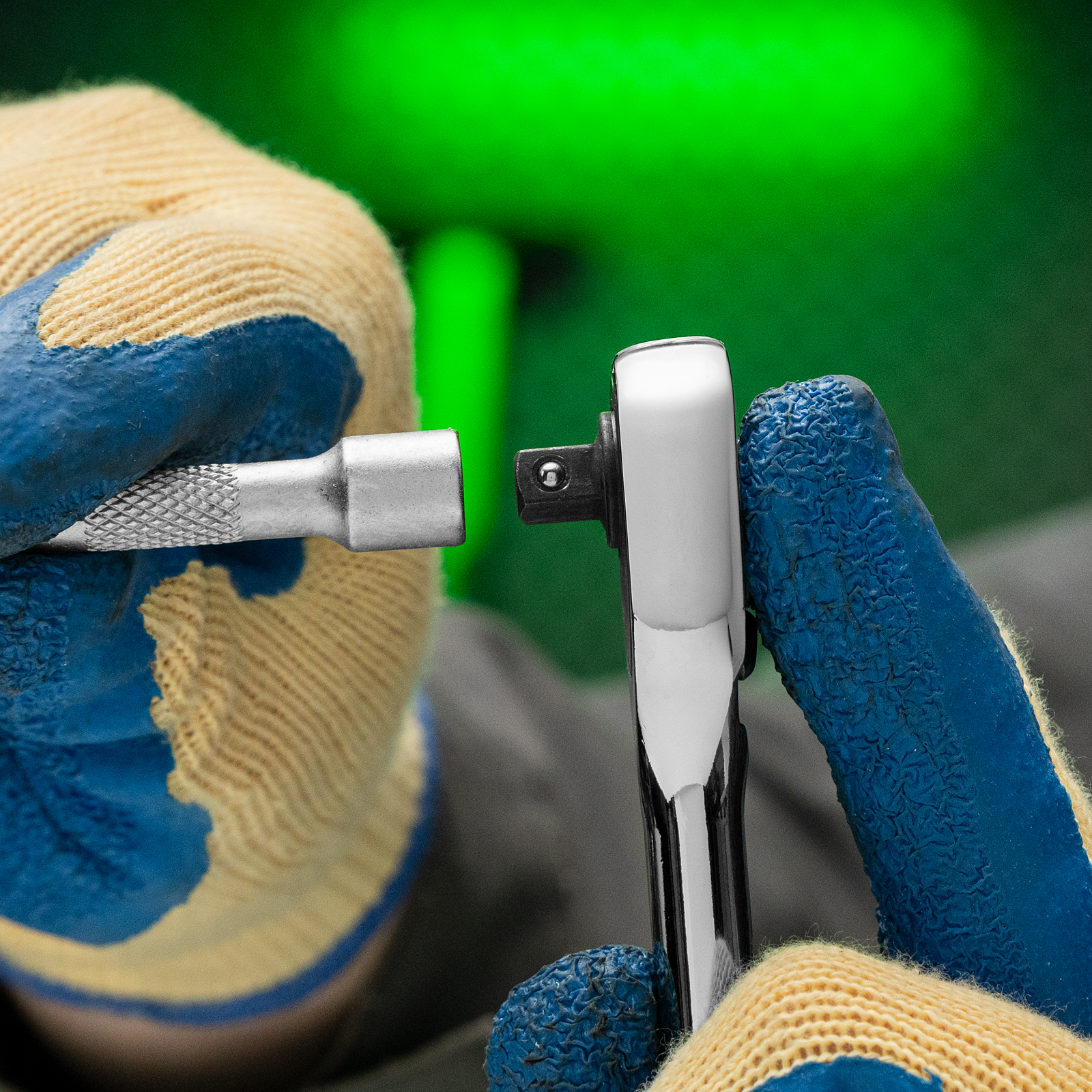 - Надежная фиксация — шариковый замок крепко удерживает торцевую головку, поэтому она не соскочит во время работы.