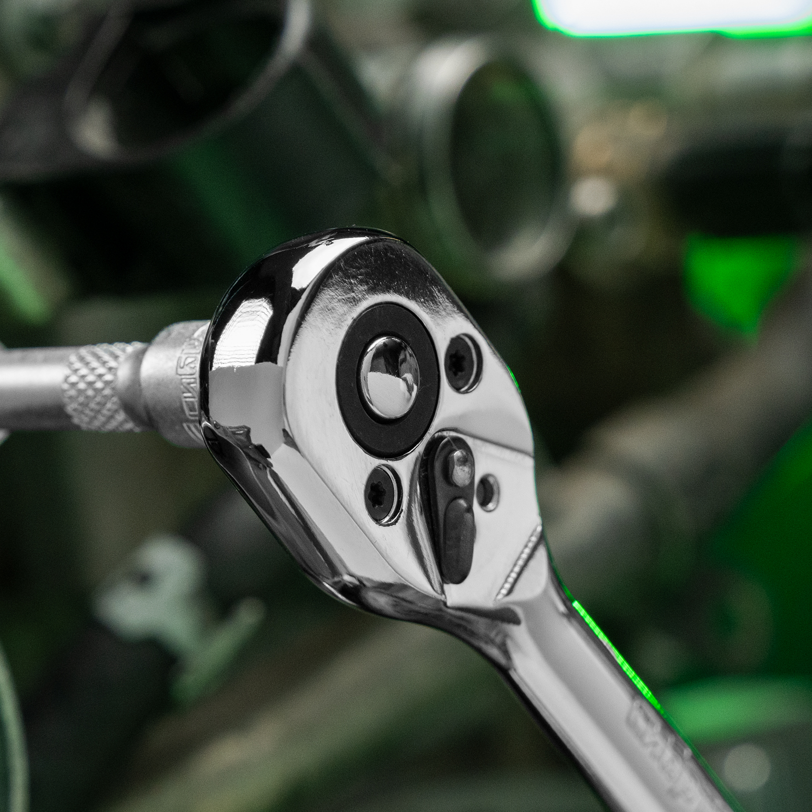 - Функция реверса — при помощи переключателя с металлическим флажком можно одним движением изменить направление вращения трещотки.