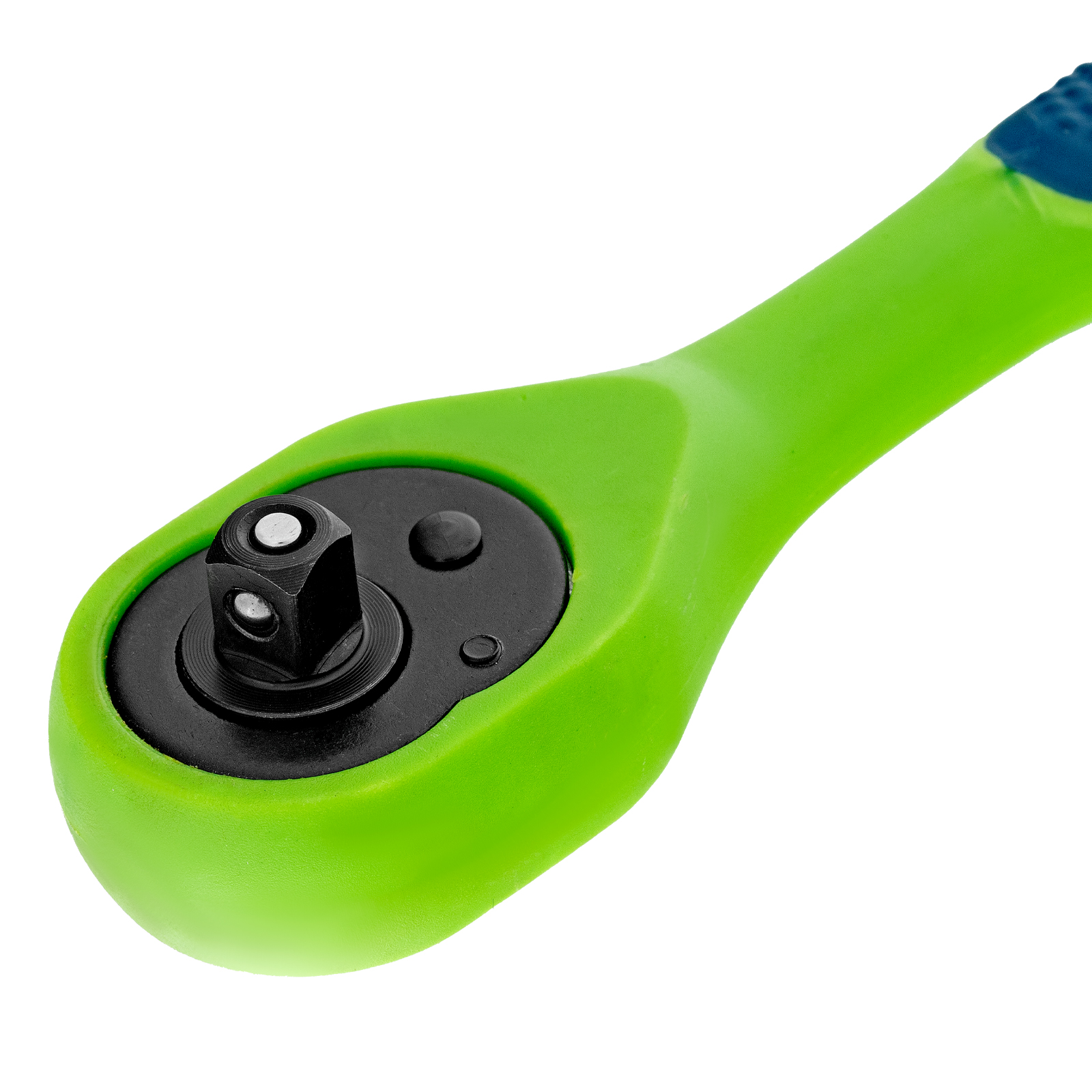 Ключ-трещотка Сибртех 14007 с двухкомпонентной рукояткой и присоединительным квадратом 1/4" используется с торцевыми головками, имеющими посадочное гнездо соответствующего размера. Предназначен для закручивания и раскручивания резьбовых соединений. Храповой механизм с 72 зубцами обеспечивает плавное вращение. Ключ применяется для ремонта автомобилей, техники и оборудования, а также пригодится дома или на даче.