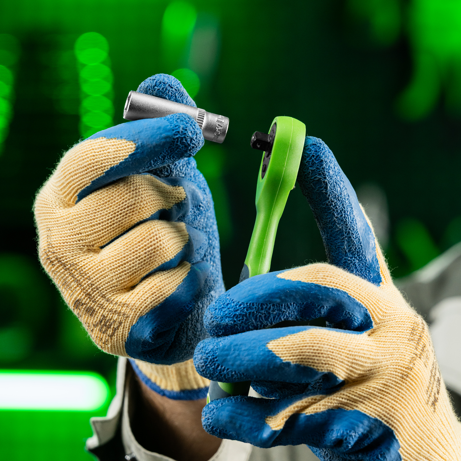 - Удобная работа в ограниченном пространстве — шаг трещотки составляет всего 5°.