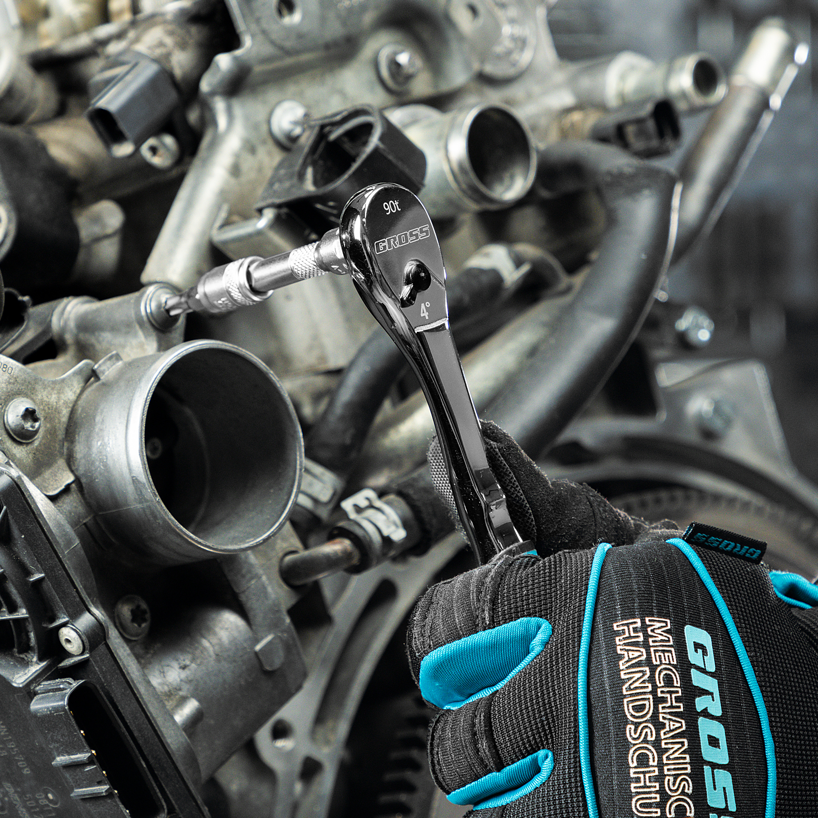 Ключ-трещотка 1/4", CrV, 90 зубьев, усиленный, хром Gross в Екатеринбурге