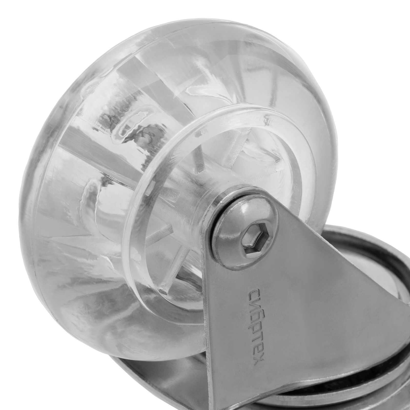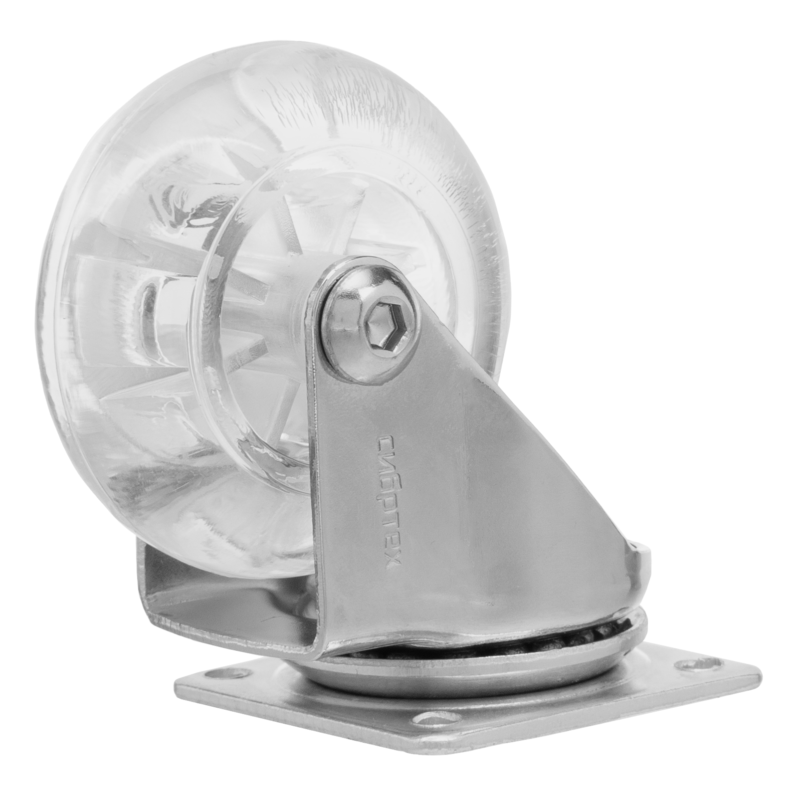 Колесо ПУ прозрачное поворотное d-50 мм, крепление платформенное Сибртех в Екатеринбурге