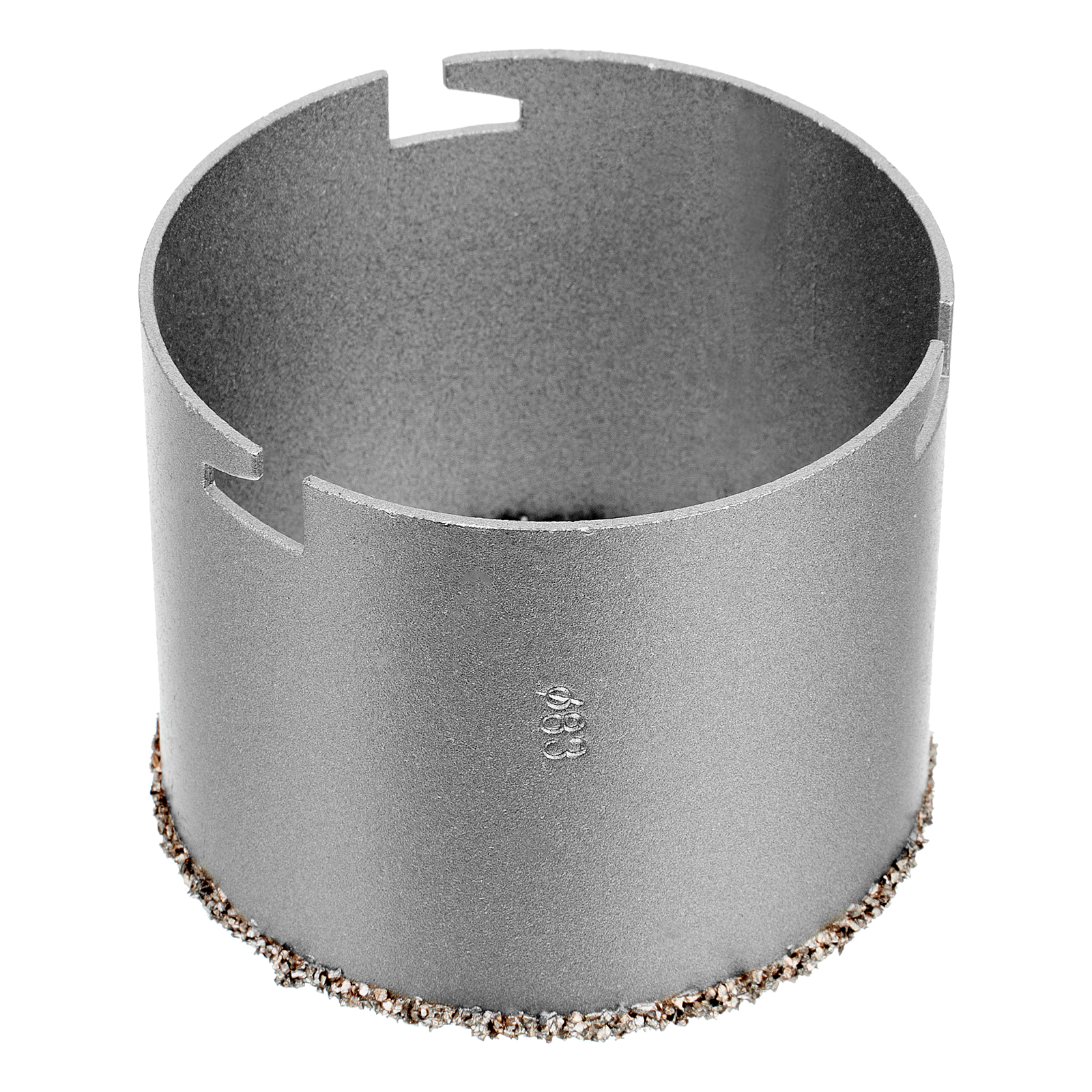 Кольцевая коронка с карбидным напылением Matrix 72856 диаметром 83 мм — сменный режущий элемент для дрелей и перфораторов. Предназначена для сверления отверстий в керамической плитке, ячеистом бетоне, пенобетоне, газосиликате, кирпиче. Пригодится для монтажа проводки в доме. Используется совместно с державкой Matrix 72860 и центрирующим сверлом Matrix 72862 (не входят в комплект поставки).
