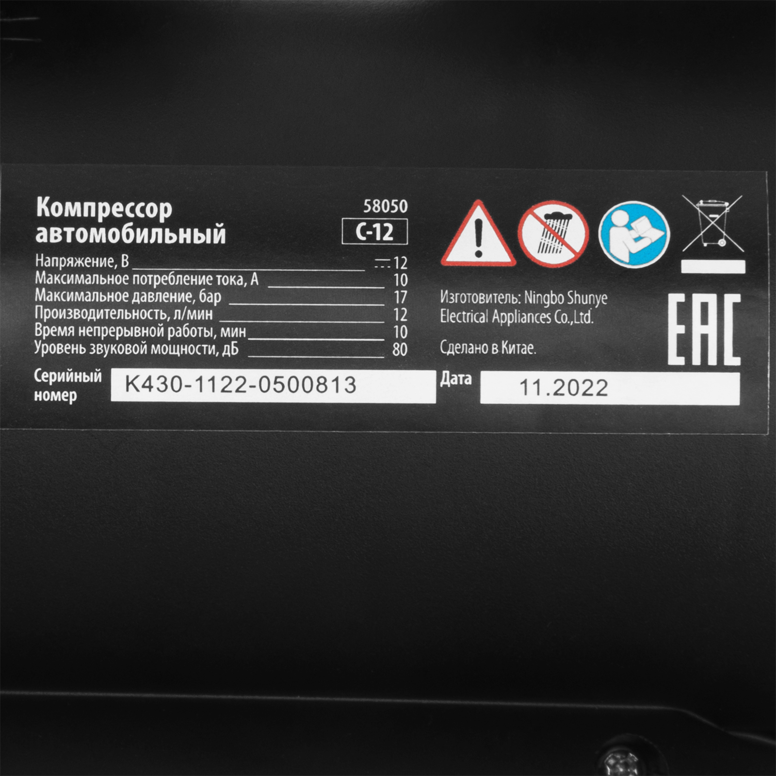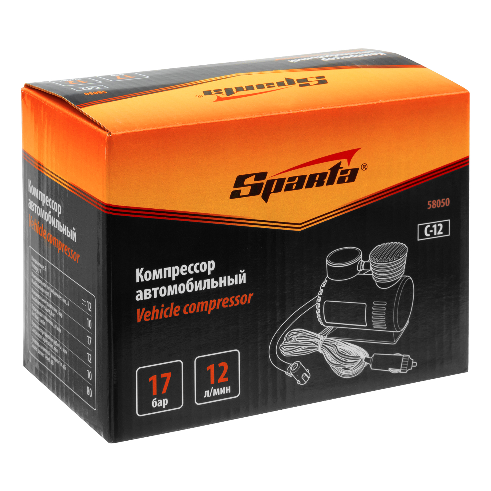 Компрессор автомобильный С-12, 12 В, 17 атм, 12 л/мин Sparta в Екатеринбурге