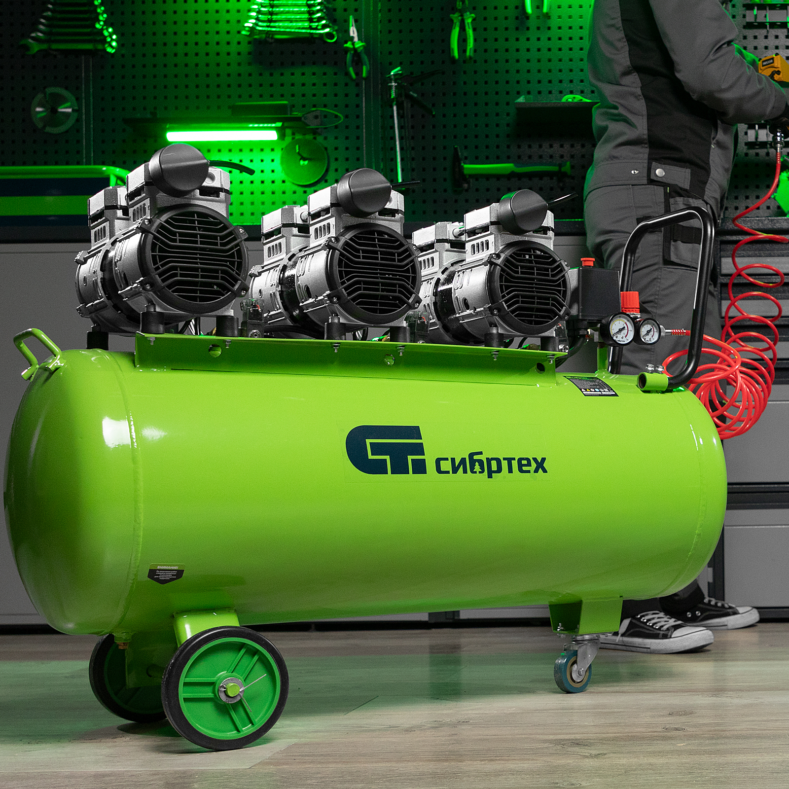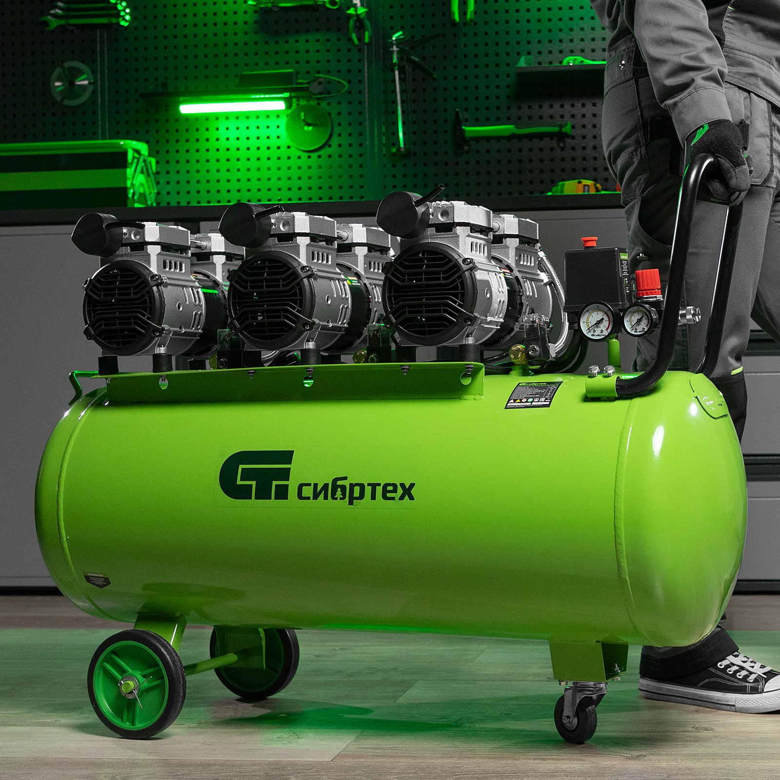 Компрессор безмаслянный малошумный МБ 2250/100, 2250 Вт, 100л, 400 л/мин Сибртех в Екатеринбурге