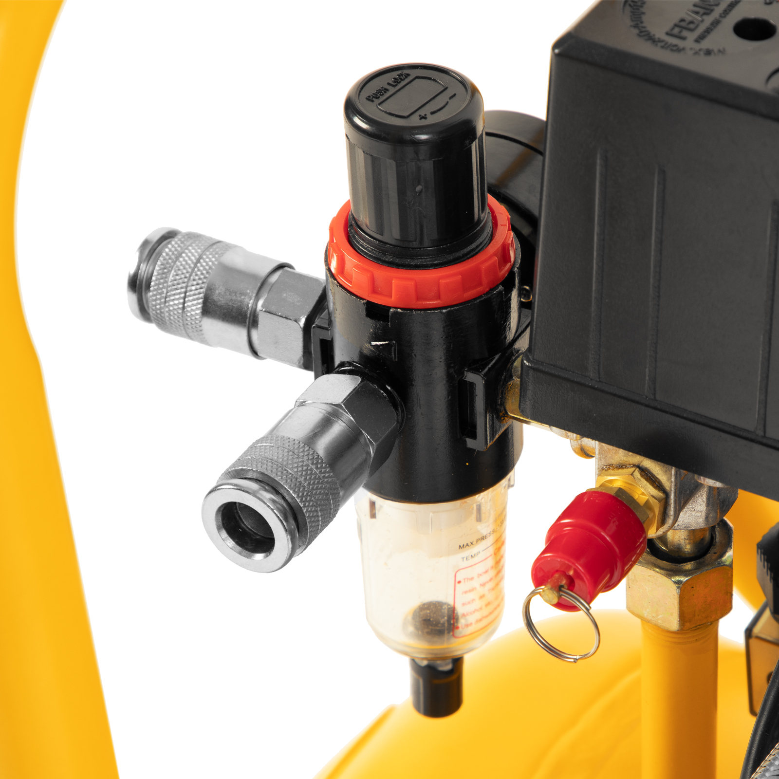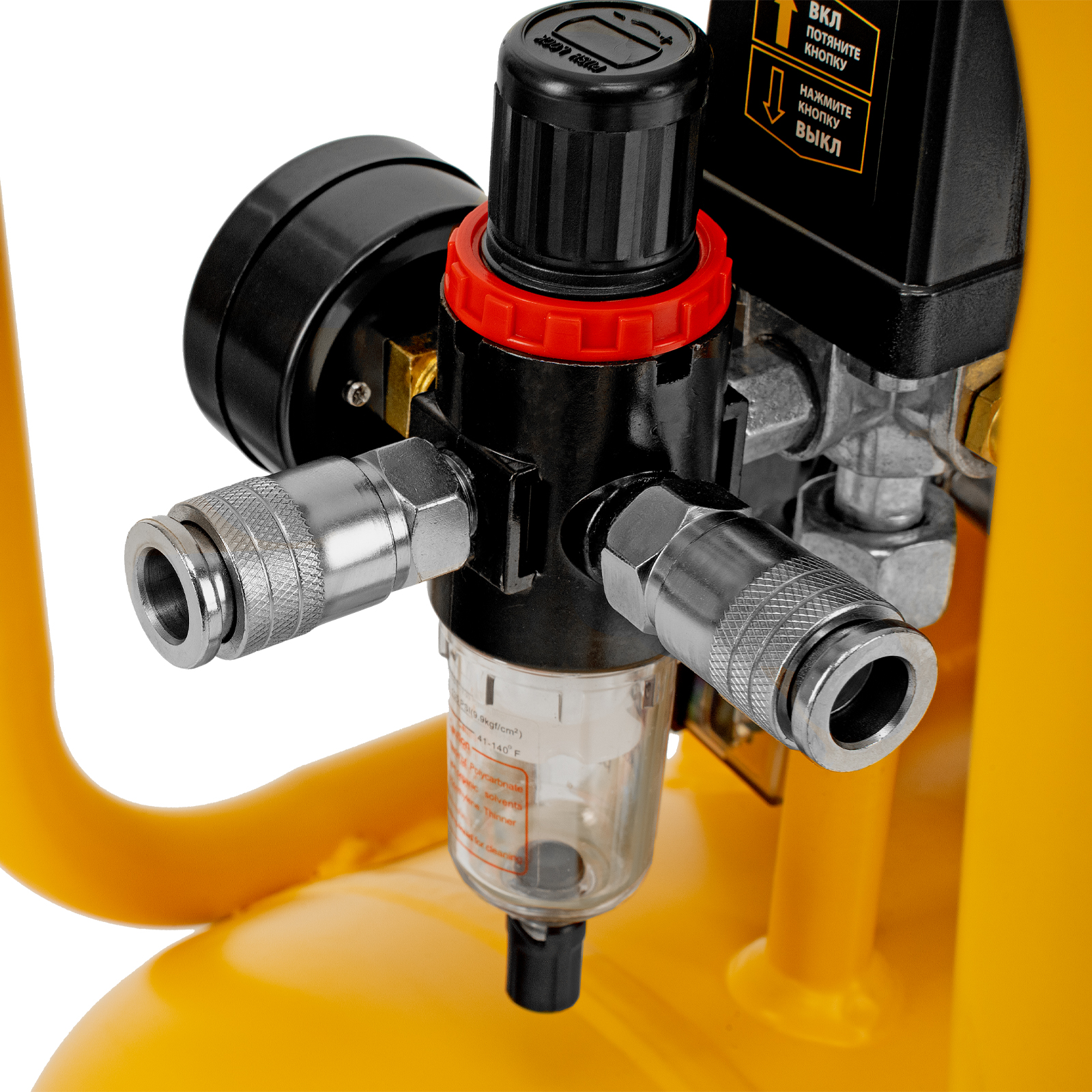 - Высокое качество очистки воздуха — фильтры надежно задерживают посторонние частицы, а влагоотделитель препятствует попаданию конденсата в пневмомагистраль.