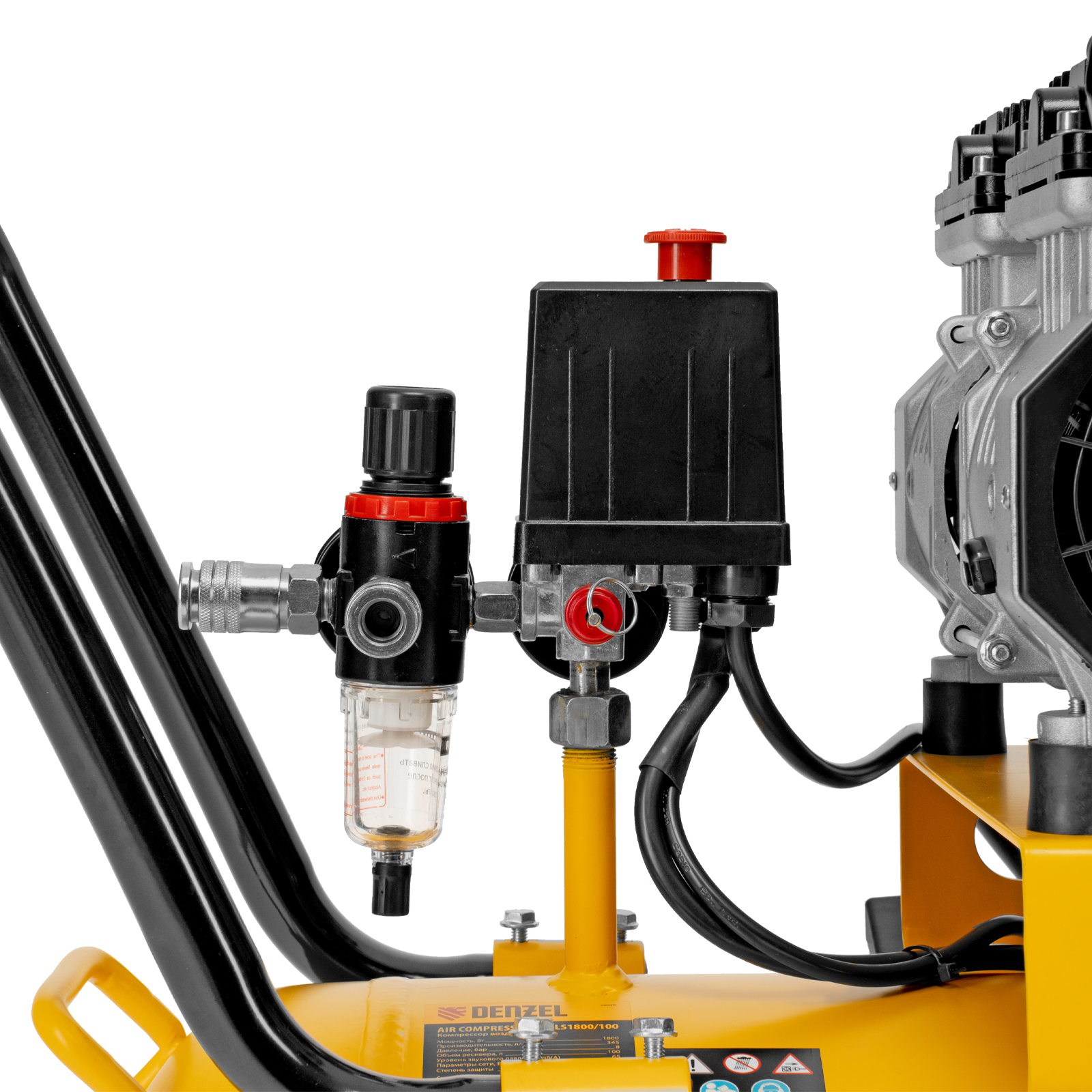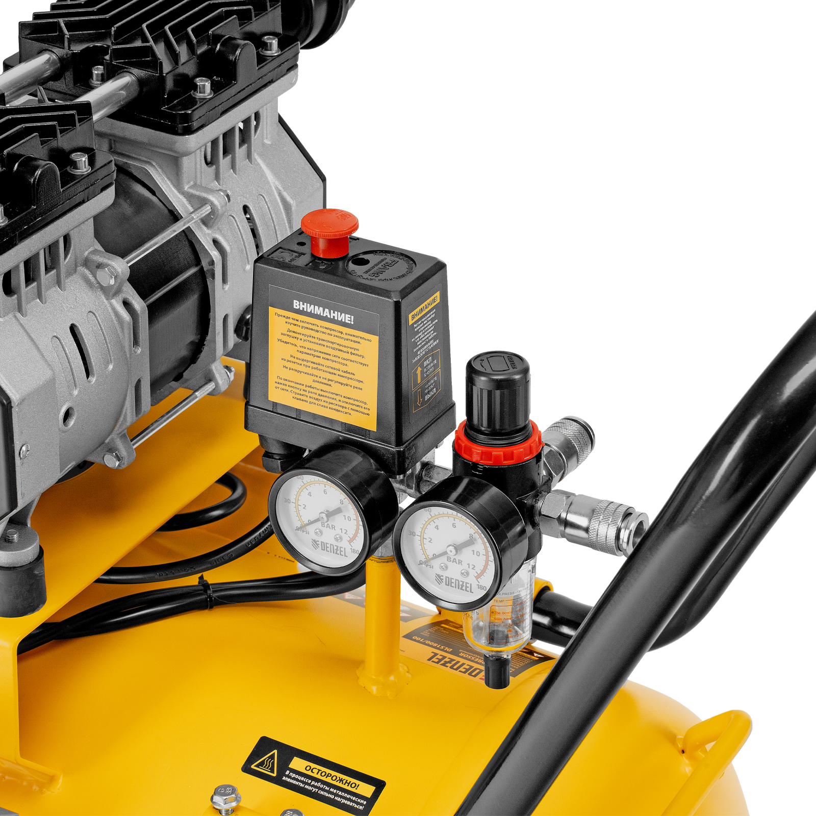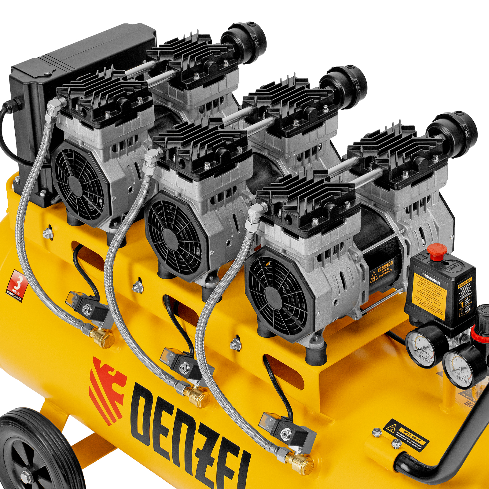Компрессор безмасляный, малошумный DLS 2250/100, 2250 Вт, 3x750, 100 л, 410 л/мин блок управления/ Denzel в Екатеринбурге