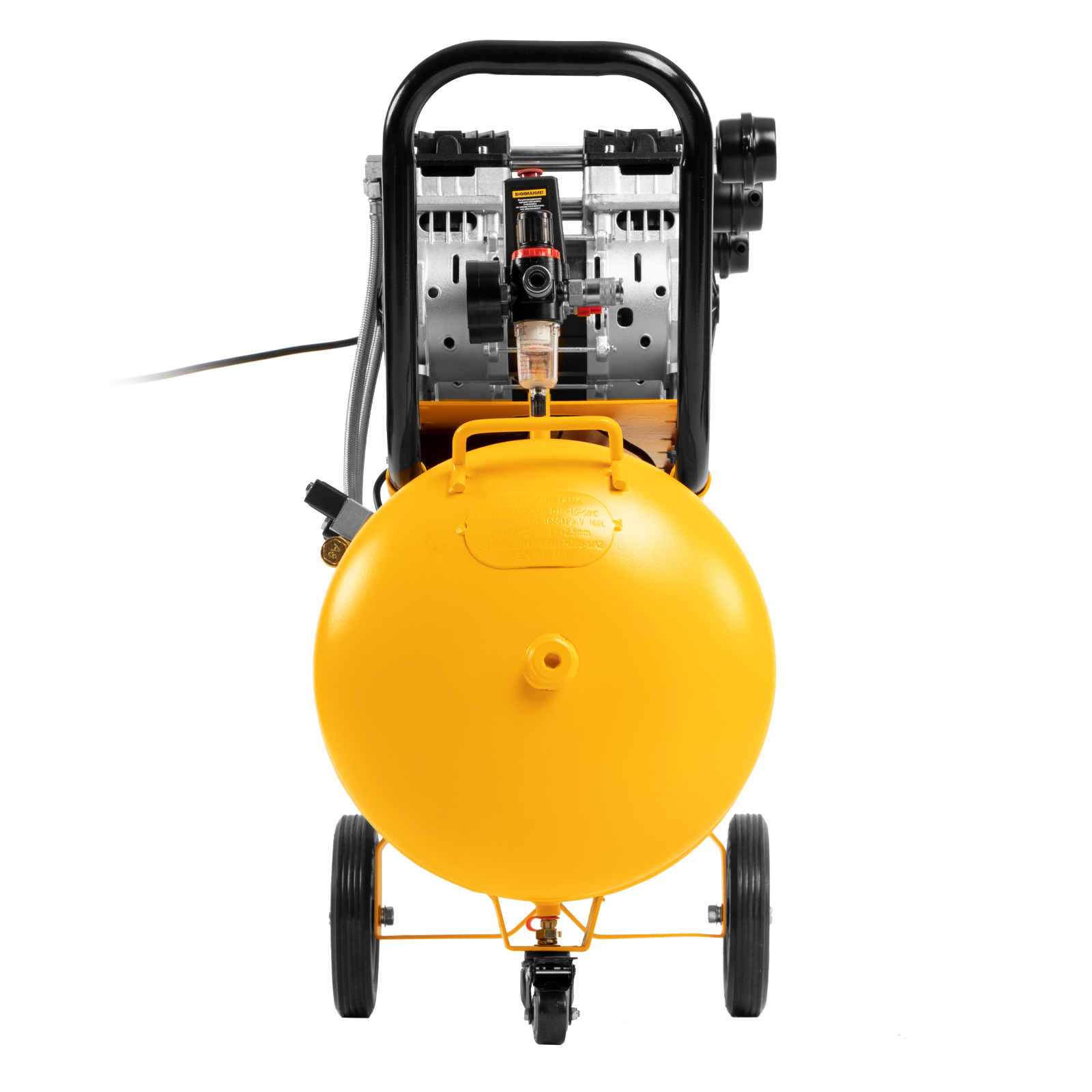 - Мобильность — компрессор оборудован ручкой и 3 колесами (из них 1 поворотное) для удобного разворота и перемещения.