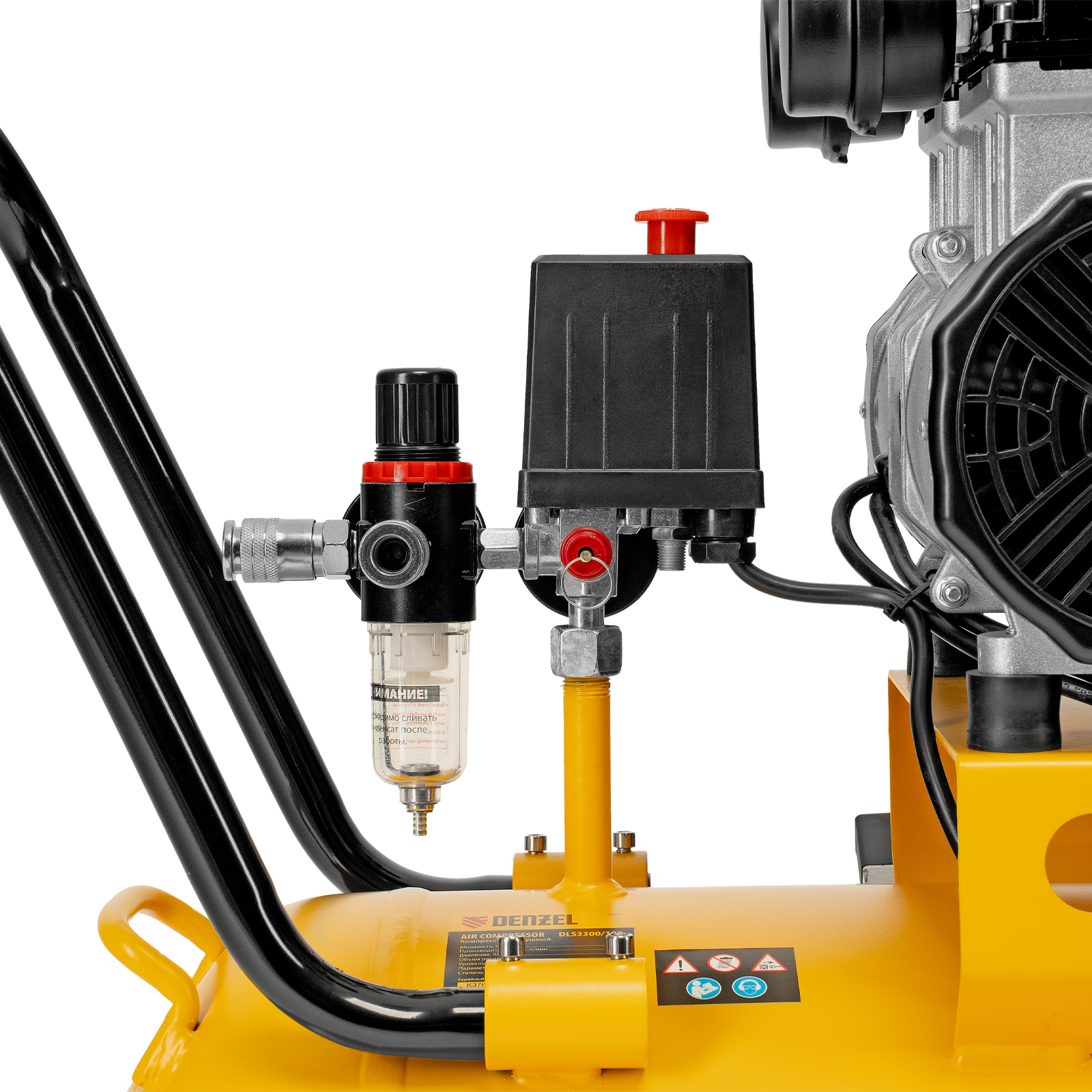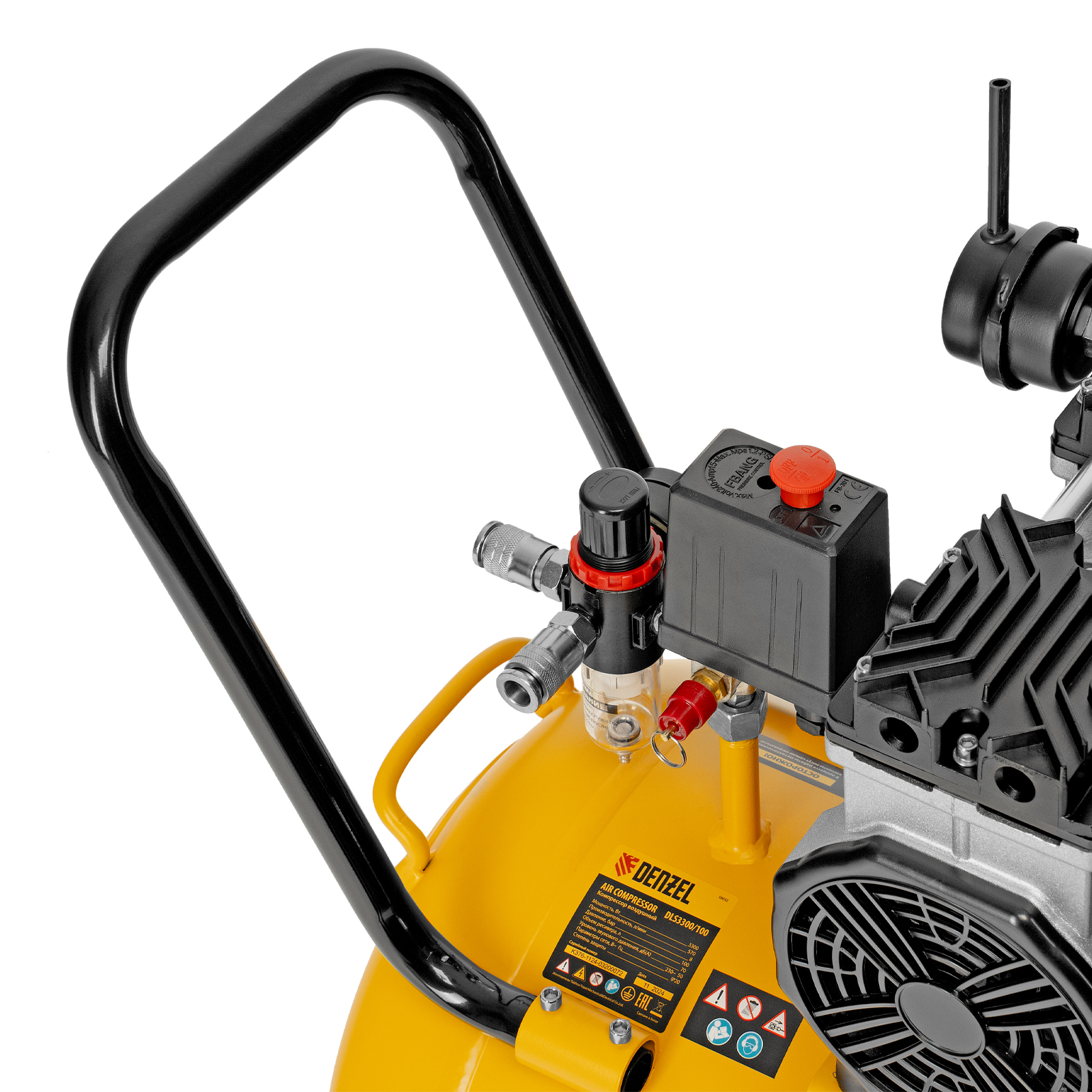 Компрессор безмасляный, малошумный DLS 3300/100, 3300 Вт,3x1100, 100 л, 570 л/мин ,блок управления Denzel в Екатеринбурге