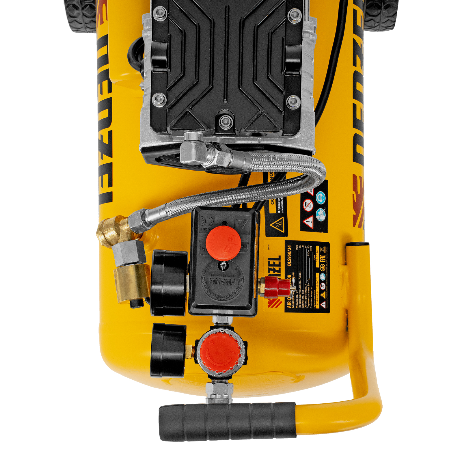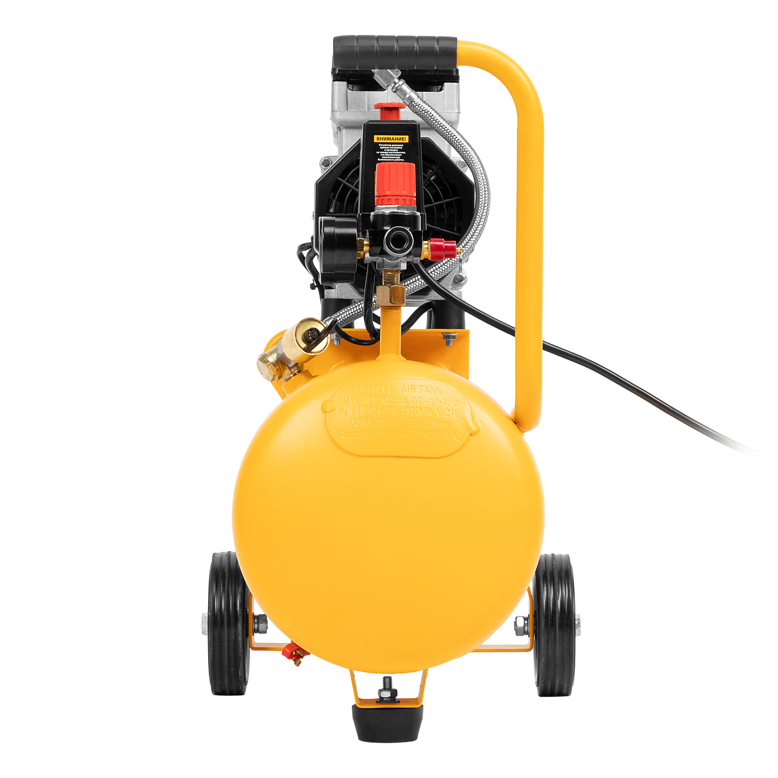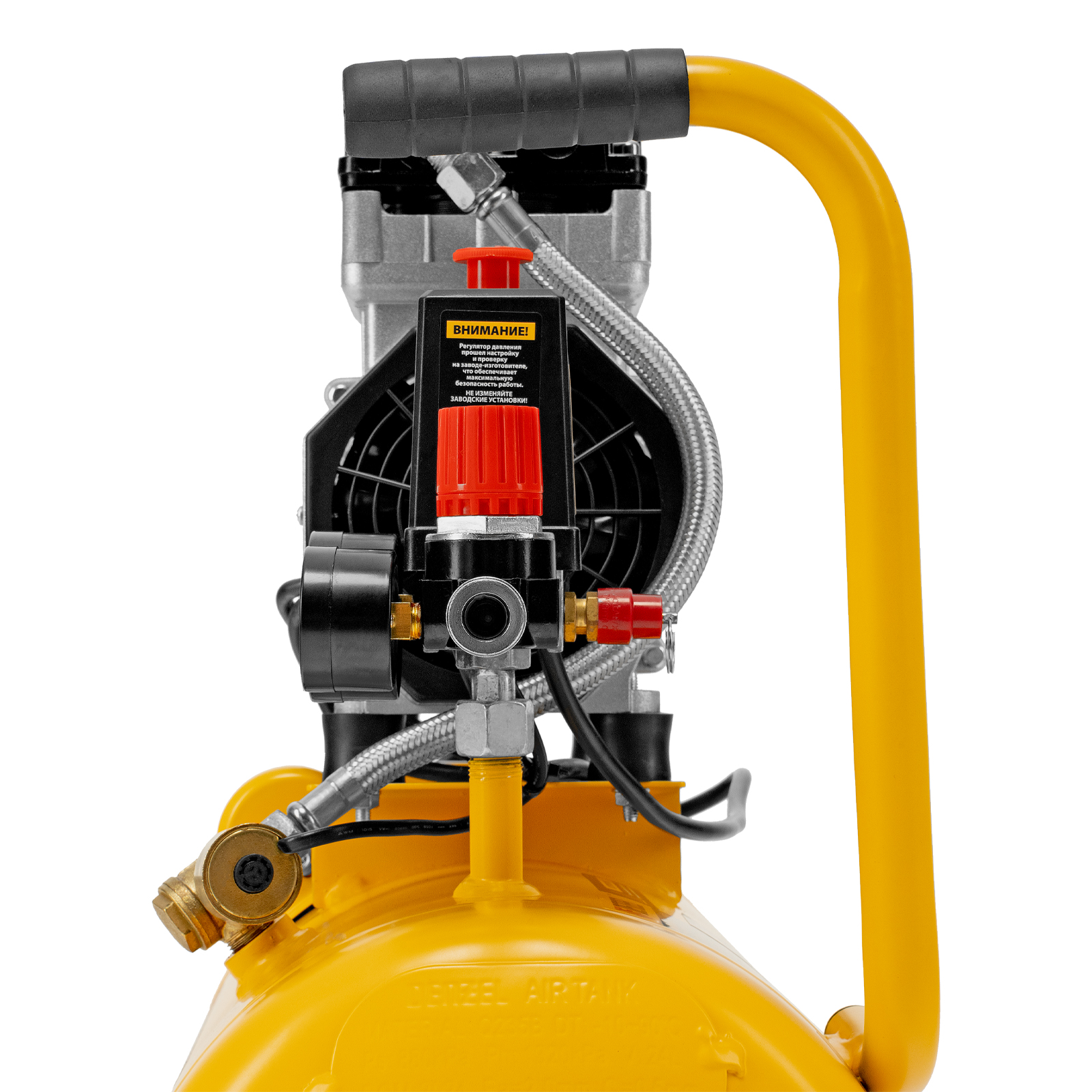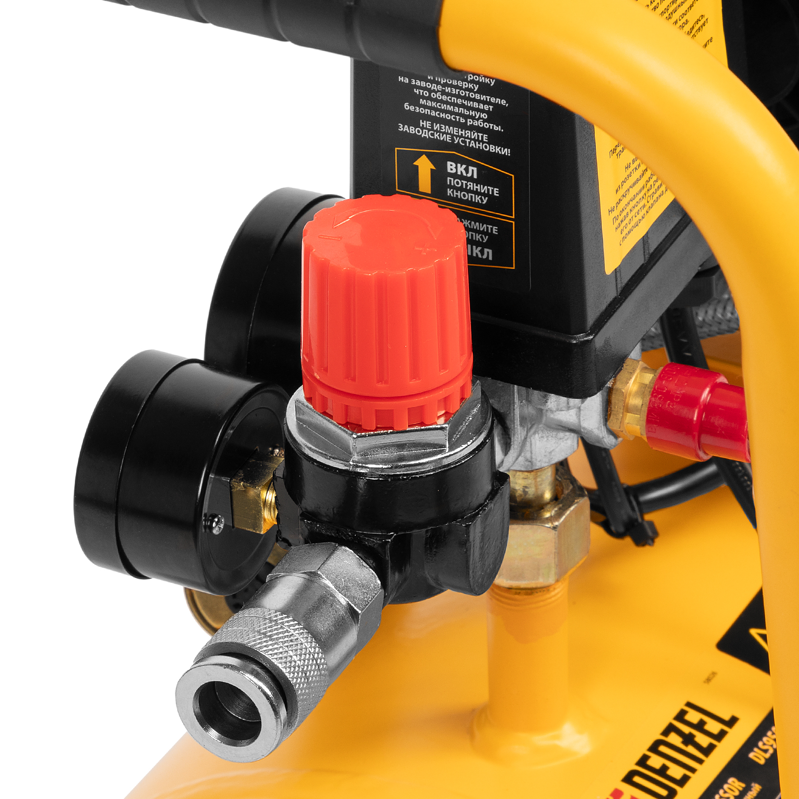 - Безопасность и высокая устойчивость — резиновые ножки гасят вибрации и удерживают компрессор на месте в процессе работы.