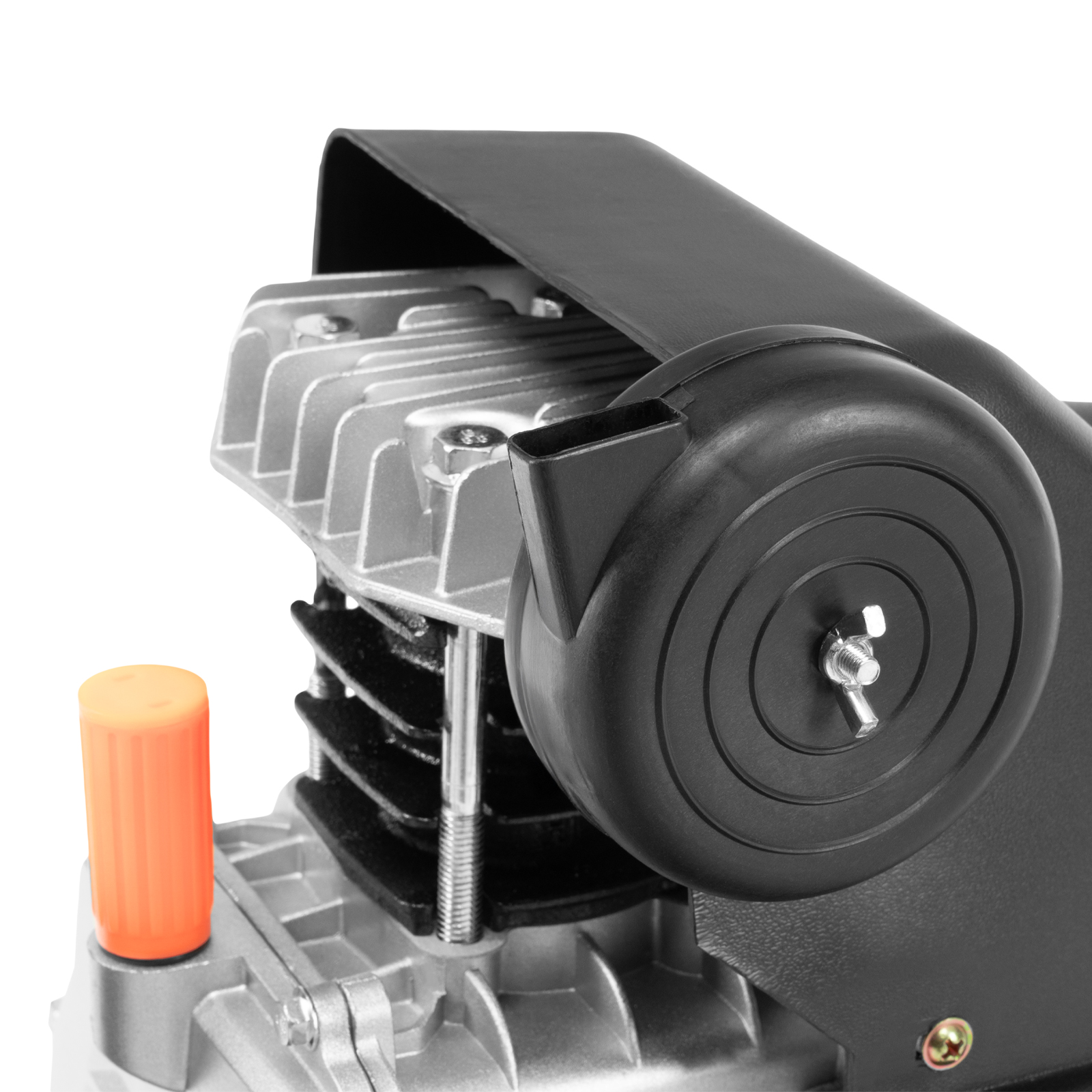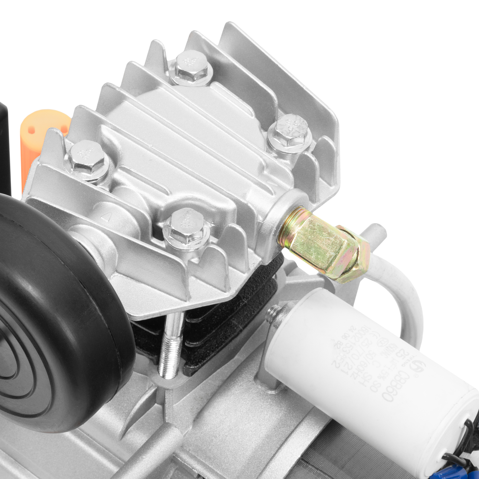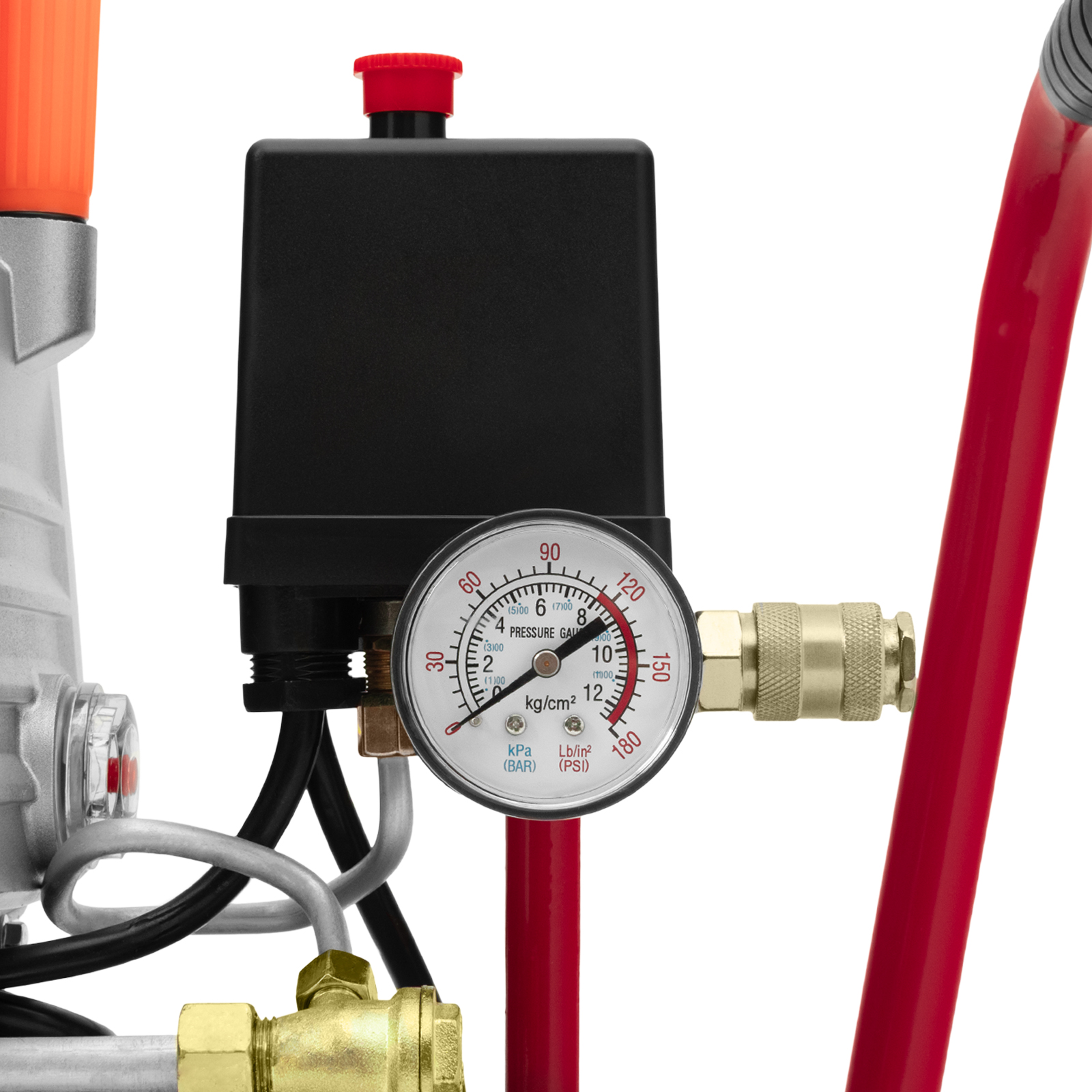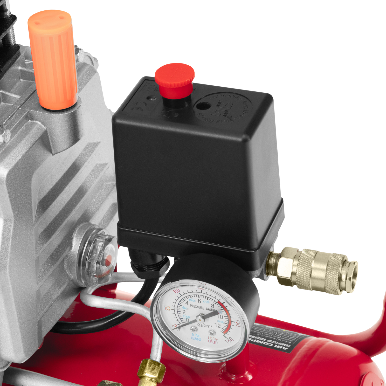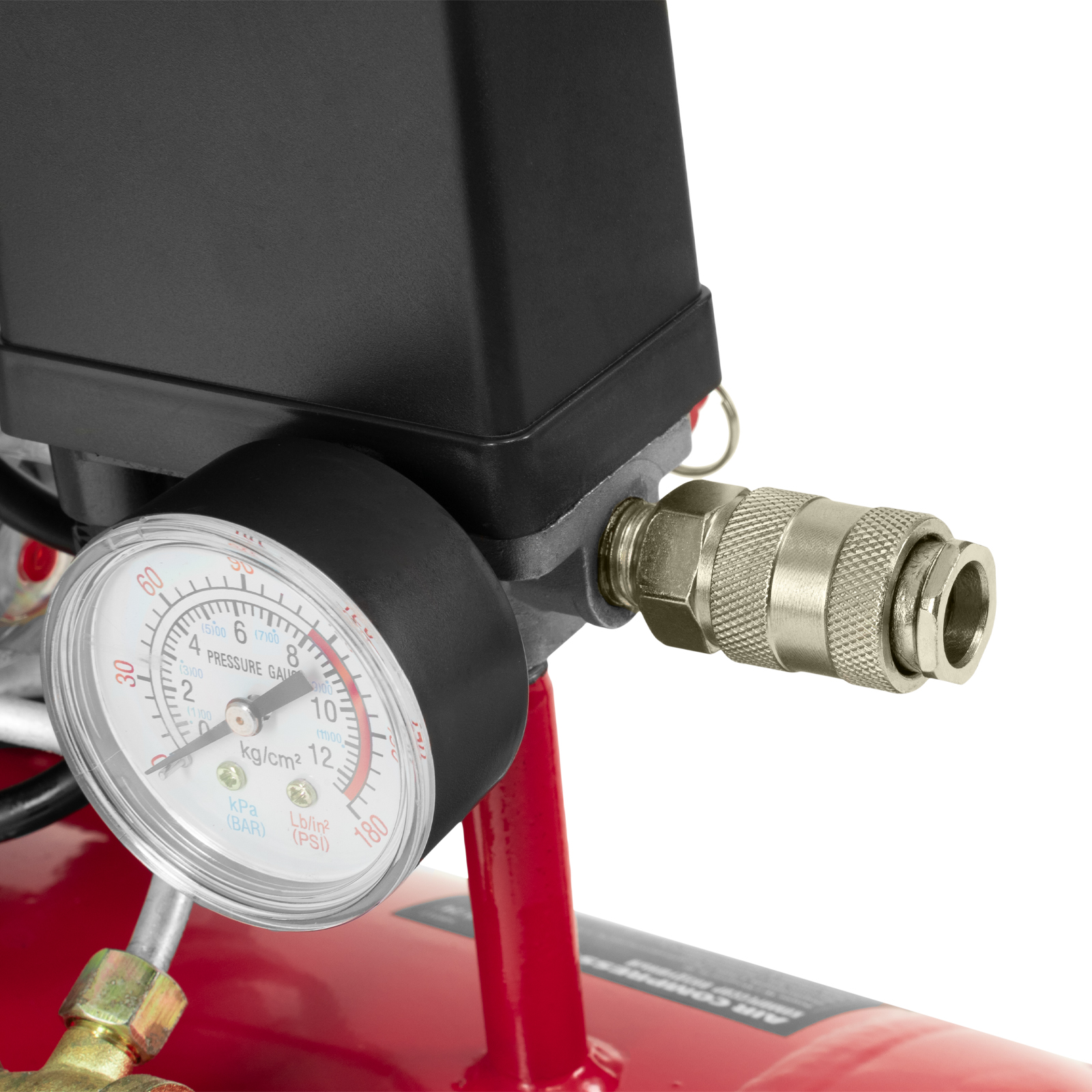- Удобный контроль давления в ресивере — компрессор оснащен механическим манометром.