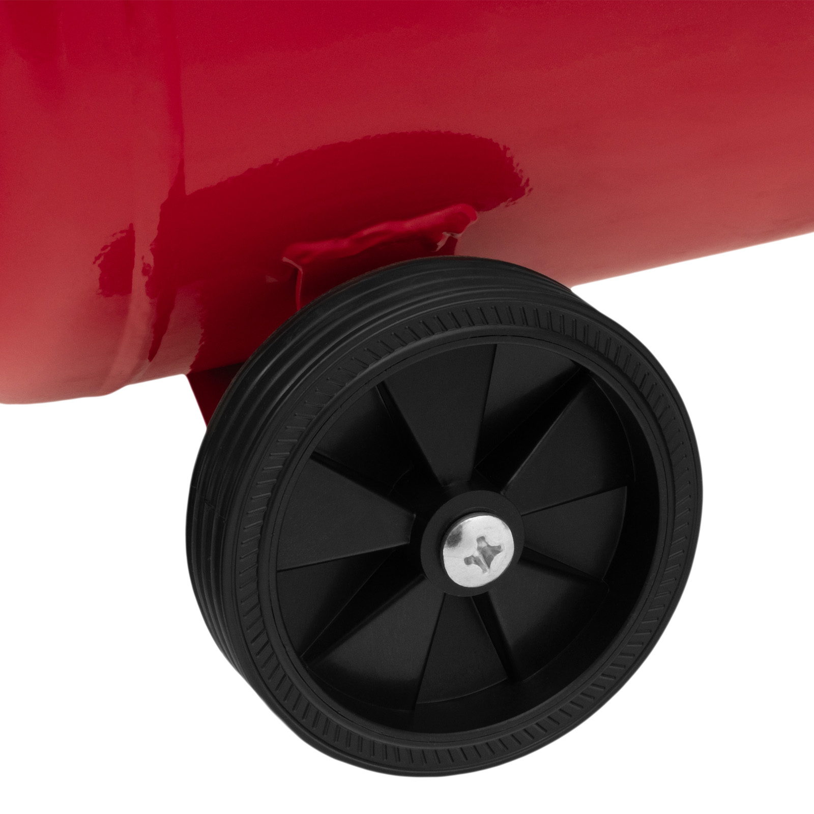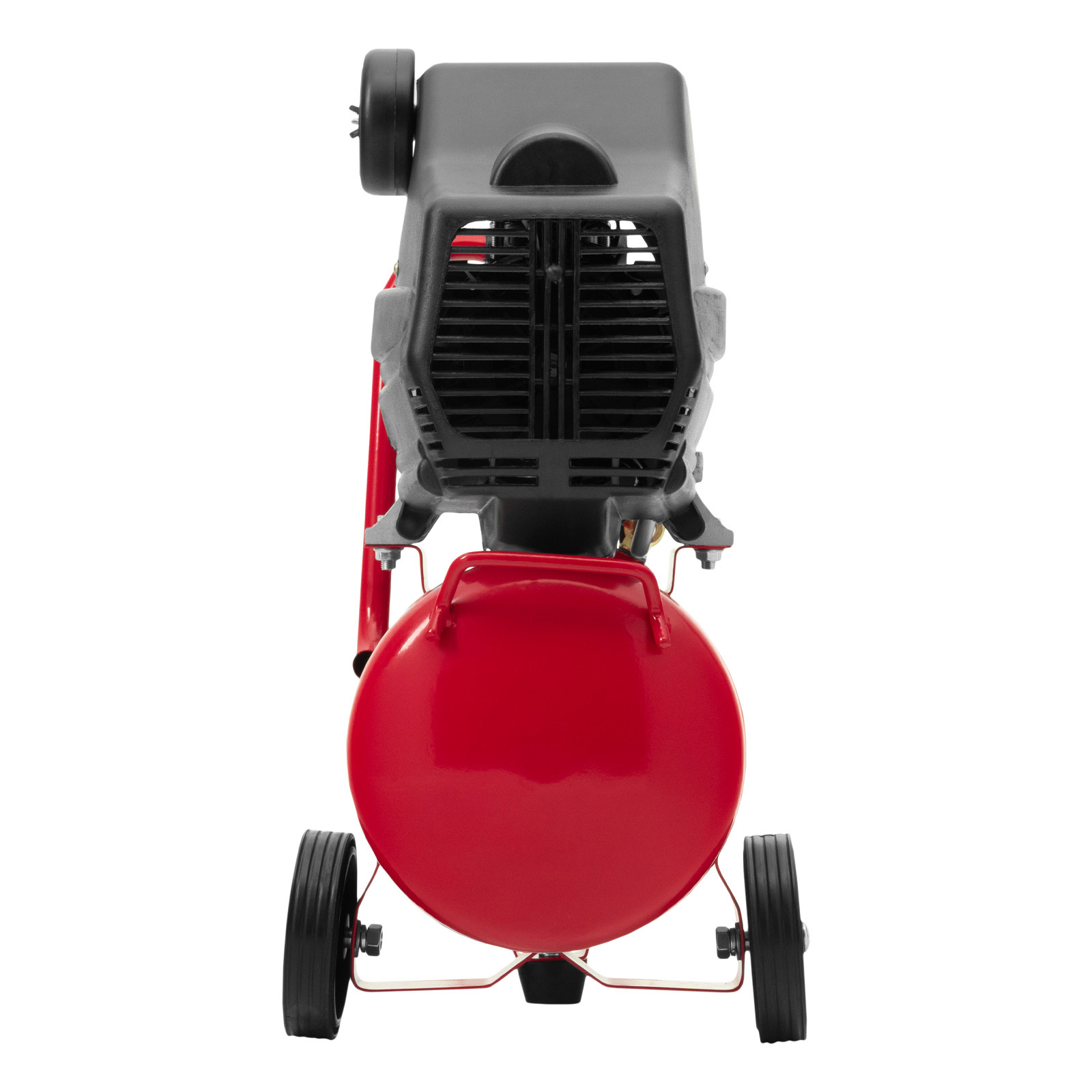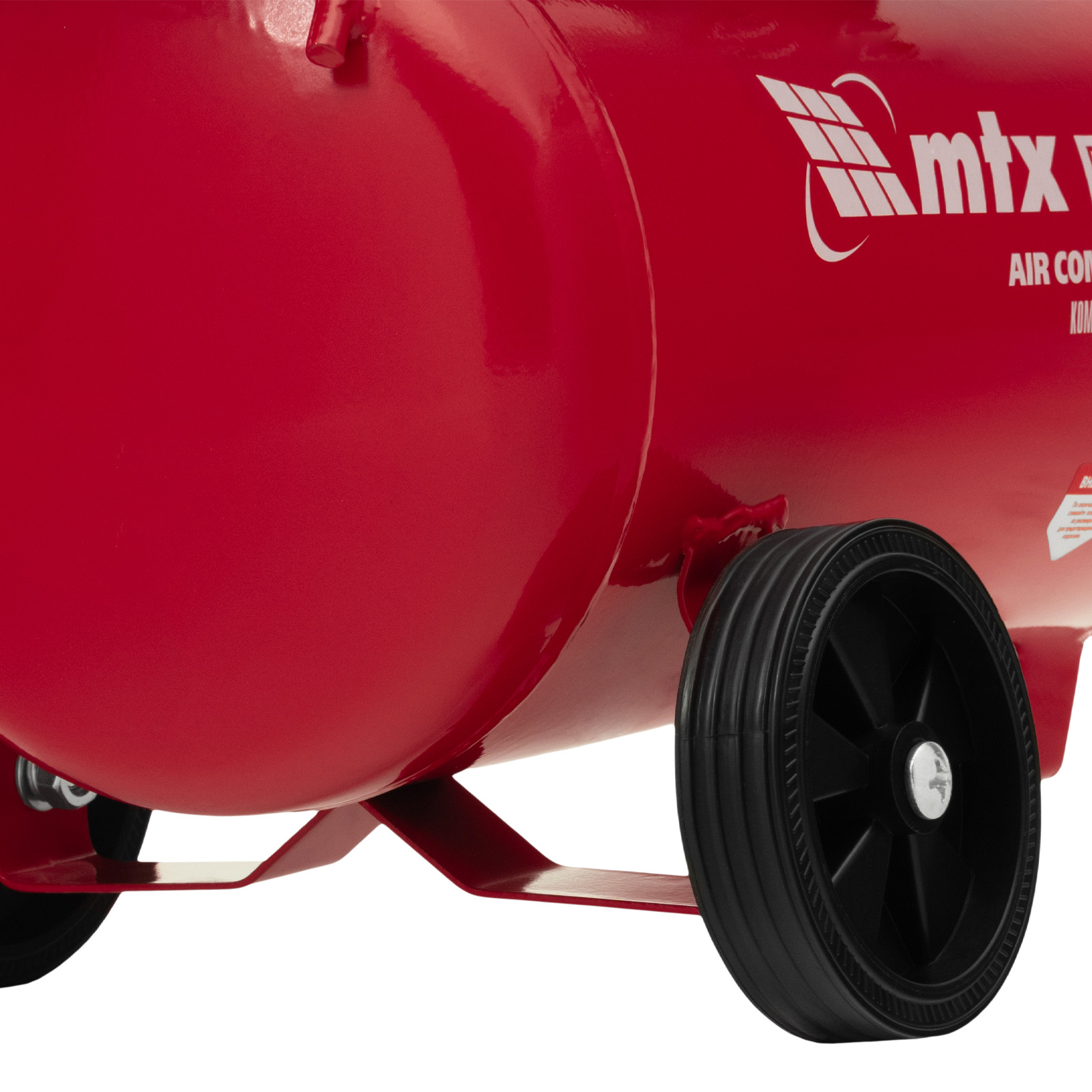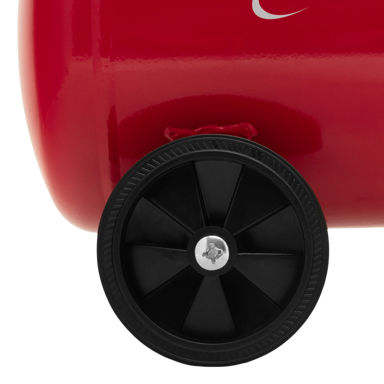 - Мобильность — колеса и рукоятка с нескользящим покрытием облегчают перемещение компрессора по рабочей площадке.