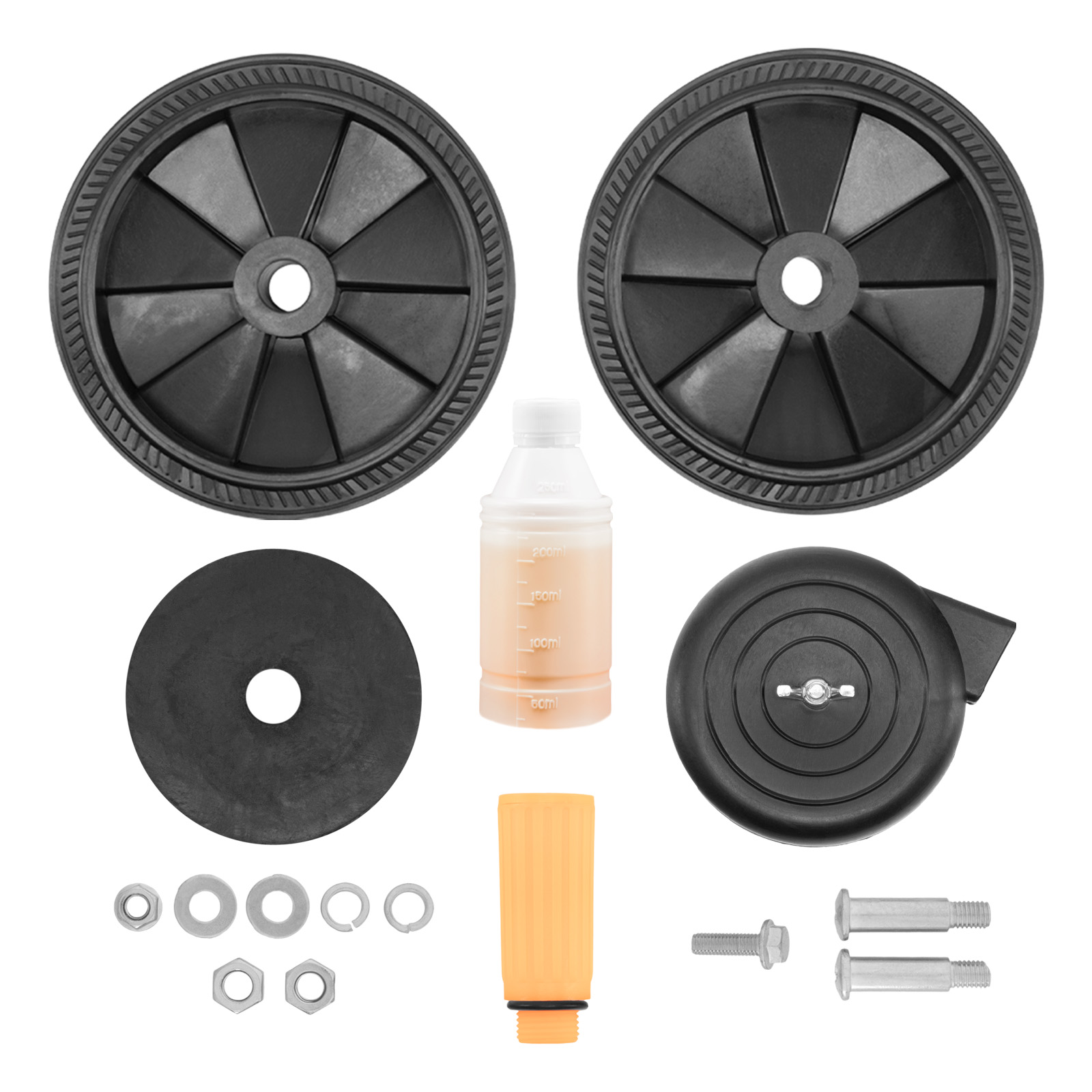 Компрессор воздушный - 1 штКолесо с крепежом - 2 штВиброопора с крепежом - 1 штВоздушный фильтр - 1 штМасло компрессорное минеральное марка DAA100 - 250 млСапун - 1 штРуководство по эксплуатации и гарантийный талон - 1 шт |