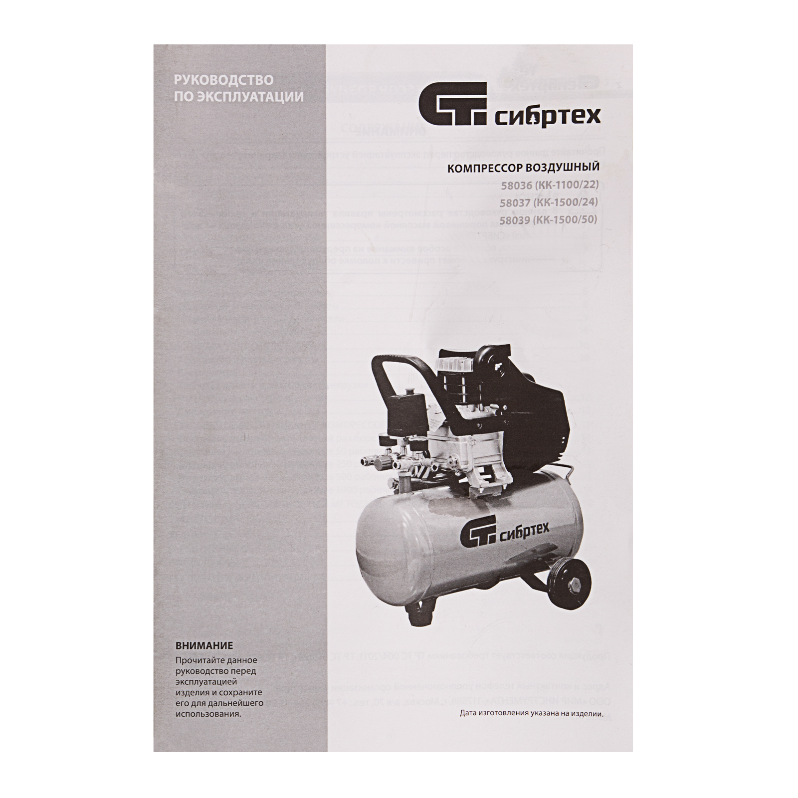 Компрессор воздушный КК-1500/50, 1.5 кВт, 198 л/мин, 50 л, прямой привод, масляный Сибртех в Екатеринбурге