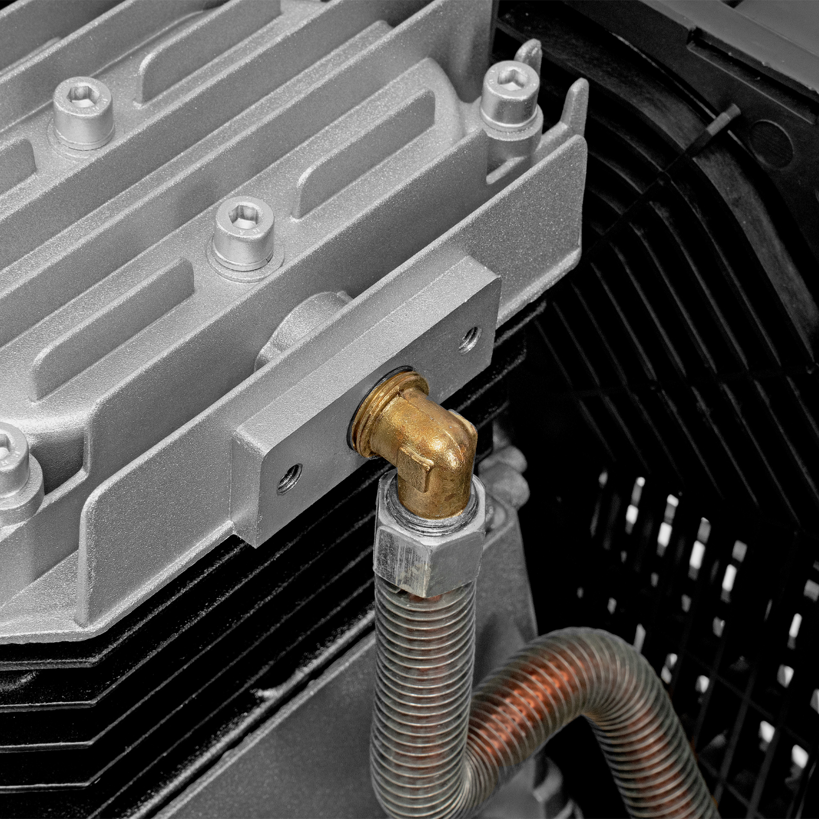 - Высокий ресурс — чугунные цилиндры выдерживают интенсивные нагрузки, увеличенные ребра на них повышают эффективность охлаждения.