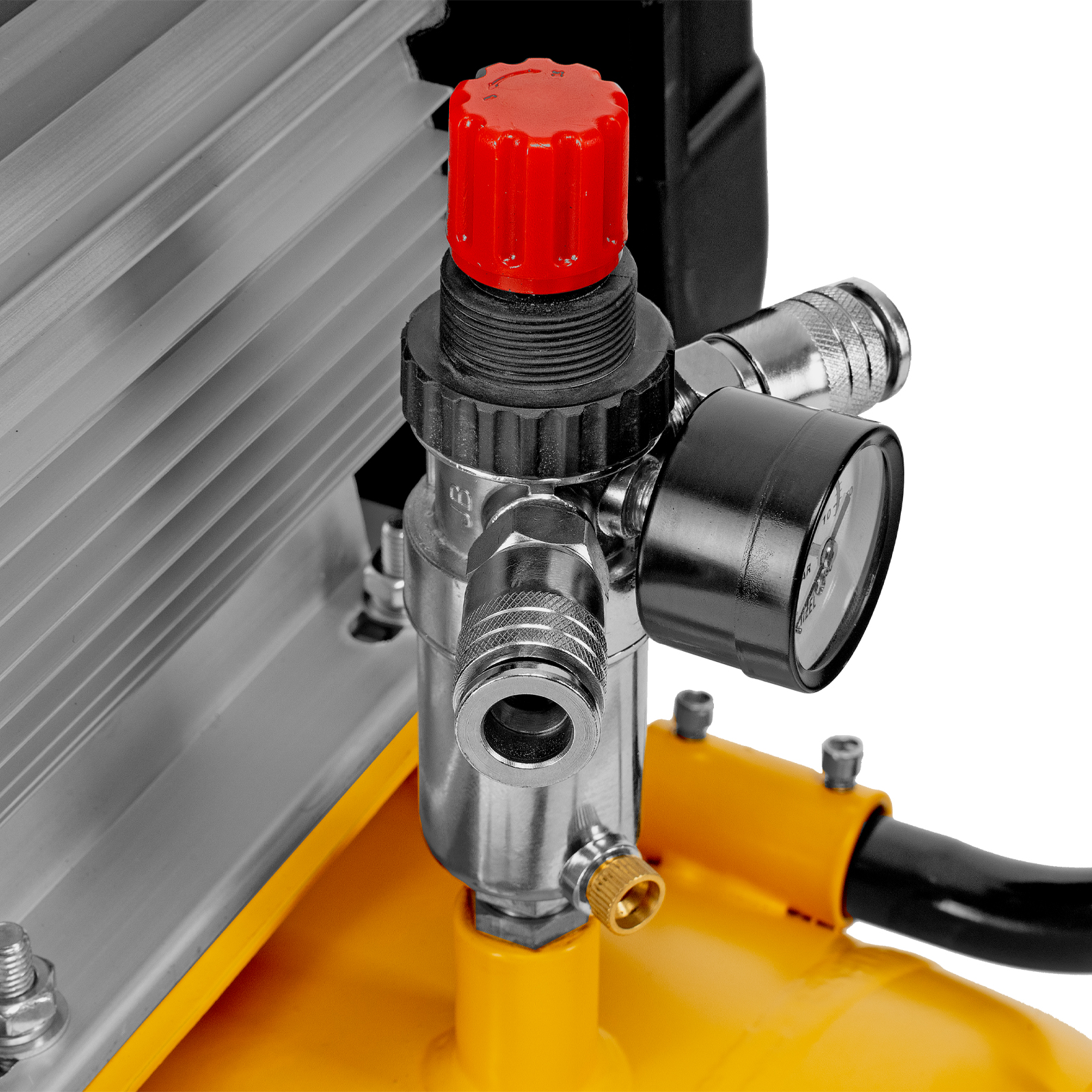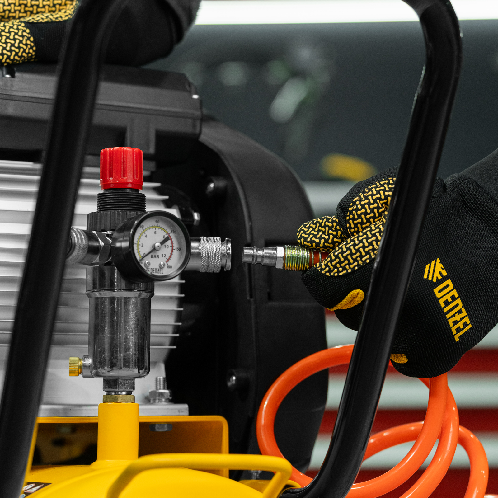 - Регулировка давления на выходе — можно установить оптимальное значение для подключения пневмоинструмента.