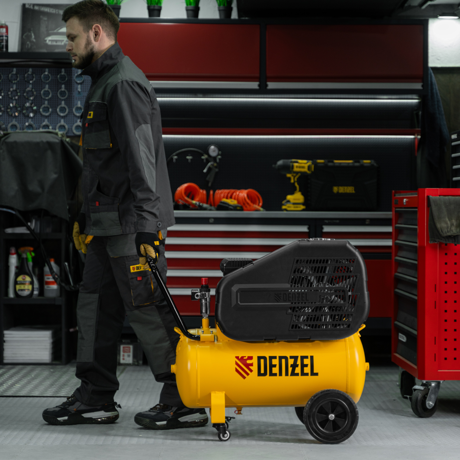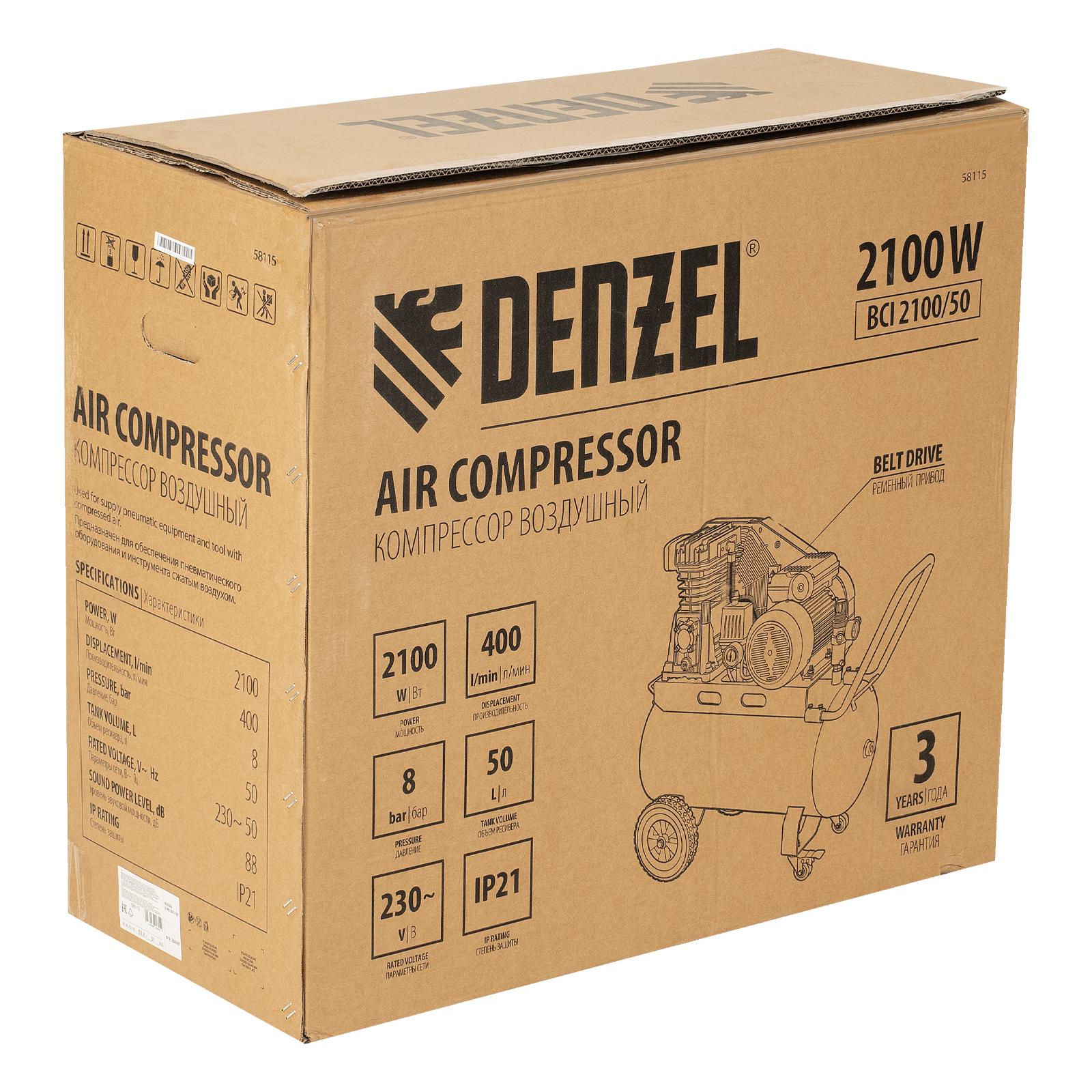 Воздушный компрессор Denzel BCI 2100/50 58115 с ременным приводом, мощностью 2,1 кВт и производительностью 400 л/мин, с ресивером объемом 50 л, — источник сжатого воздуха для работы с пневмоинструментом: пневмогайковертом, пневмодрелью, краскопультом, углошлифовальной машиной и т.д. Для подключения инструмента предусмотрено 2 быстросъемных коннектора Рапид (Евро). Специальный порт позволяет подключить напрямую дополнительный ресивер или пневмомагистраль. Компрессор будет полезен на строительной площадке и станции техобслуживания.