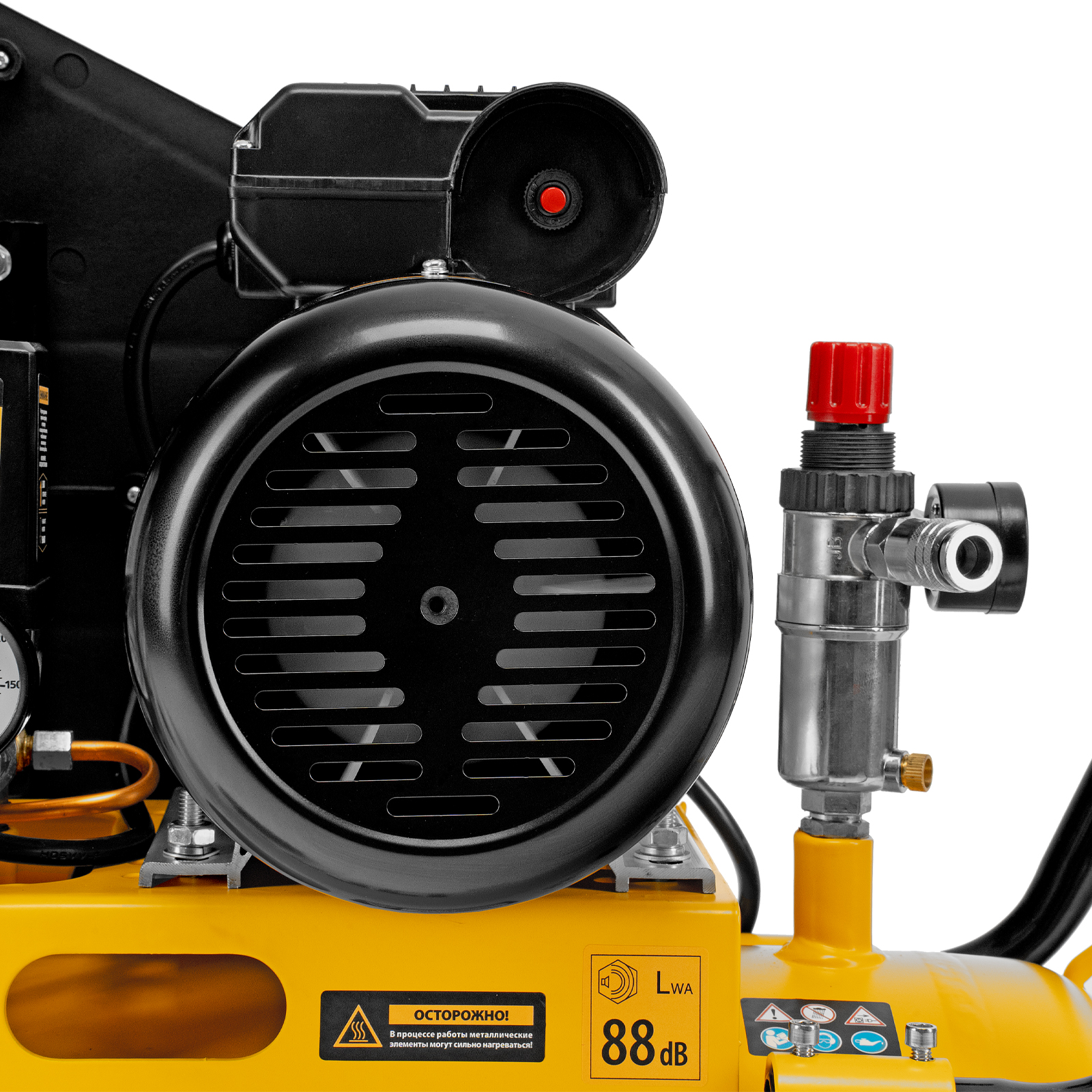 - Качественная очистка воздуха — фильтр-влагоотделитель препятствует попаданию конденсата в пневмомагистраль.
