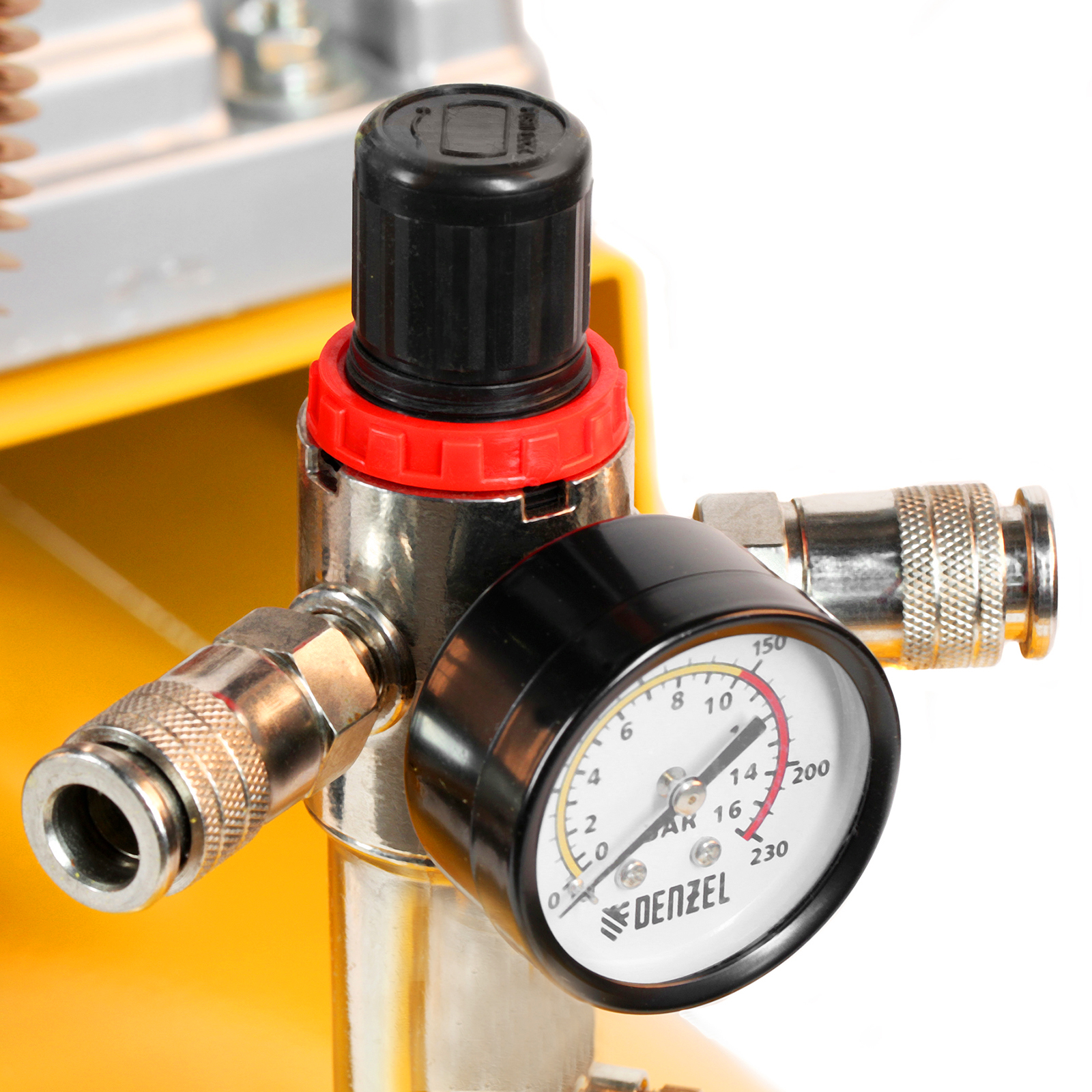 - Удобный контроль работы — компрессор оснащен двумя манометрами для отслеживания давления в ресивере и в пневмолинии.