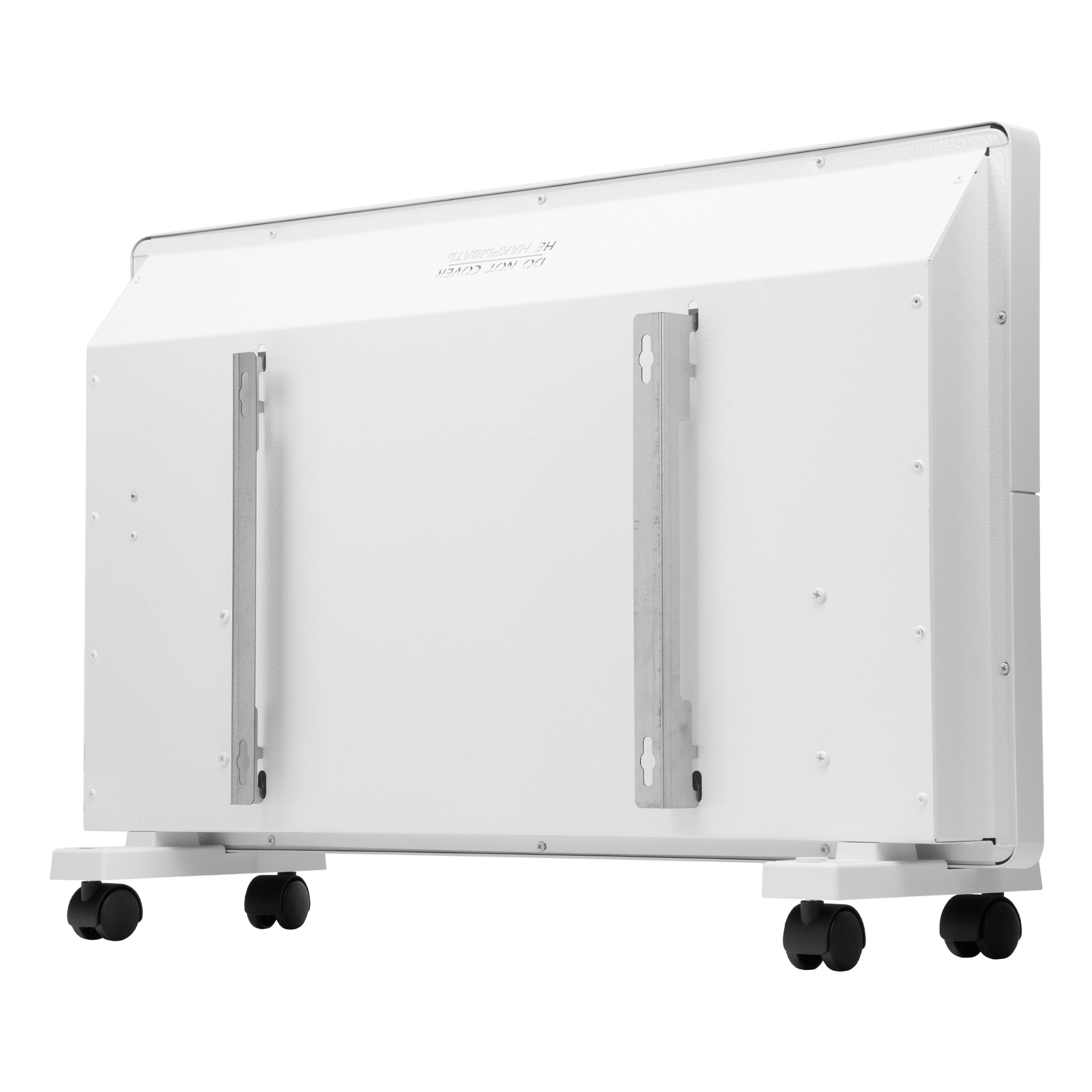 - Два варианта монтажа — конвектор можно расположить на полу или повесить на стену (колесные пары и кронштейн входят в комплект поставки).