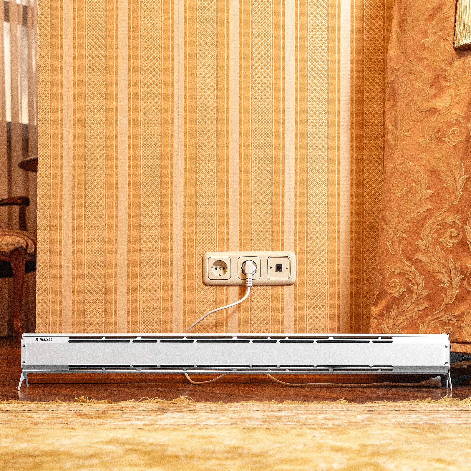 - Дополнительные возможности — обогреватель также можно установить на подоконник для создания тепловой завесы и защиты от проникновения холодного воздуха снаружи.