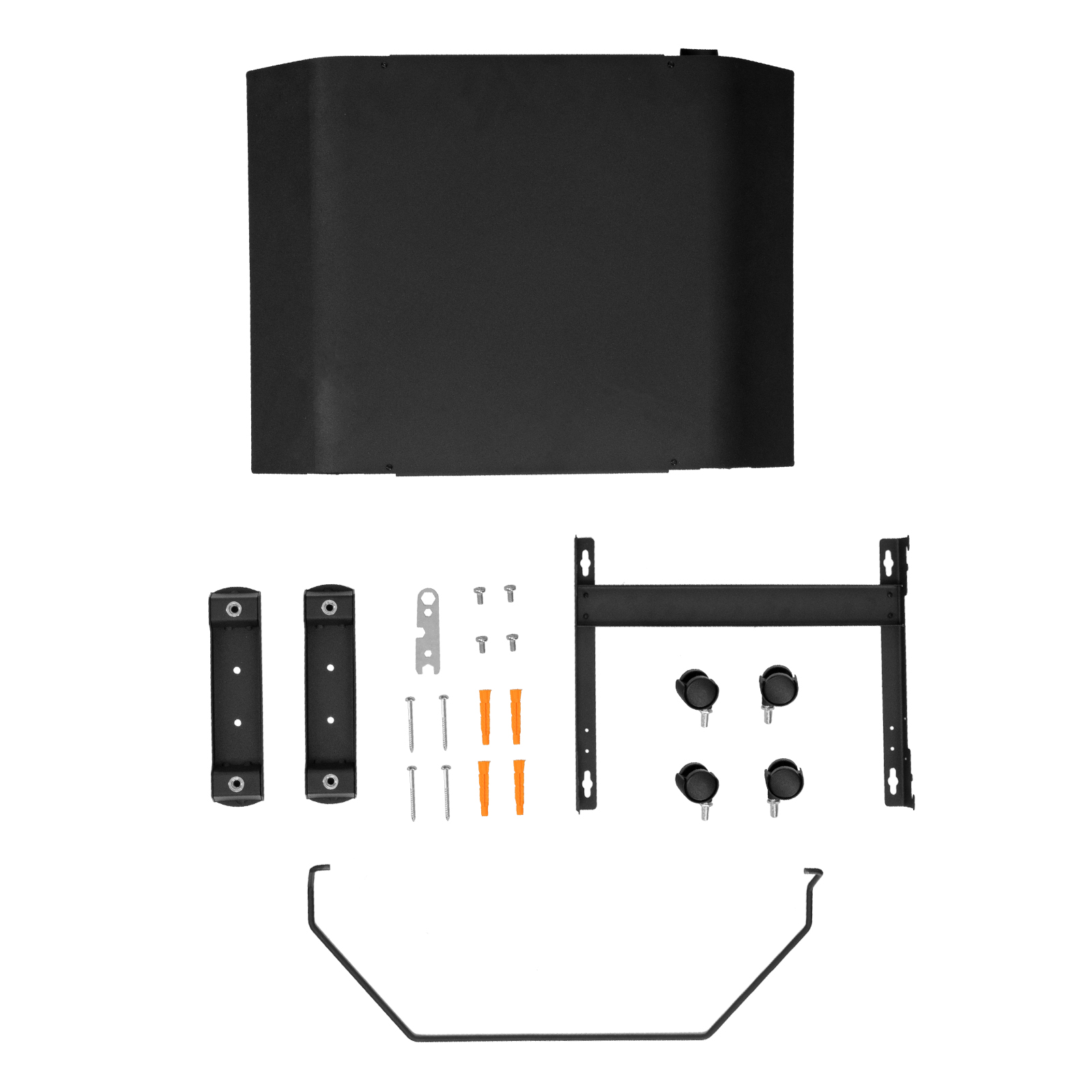 - Напольная или настенная установка — в комплект поставки включена цельнометаллическая крепежная рамка для стены, а также стальные ножки с колесами.