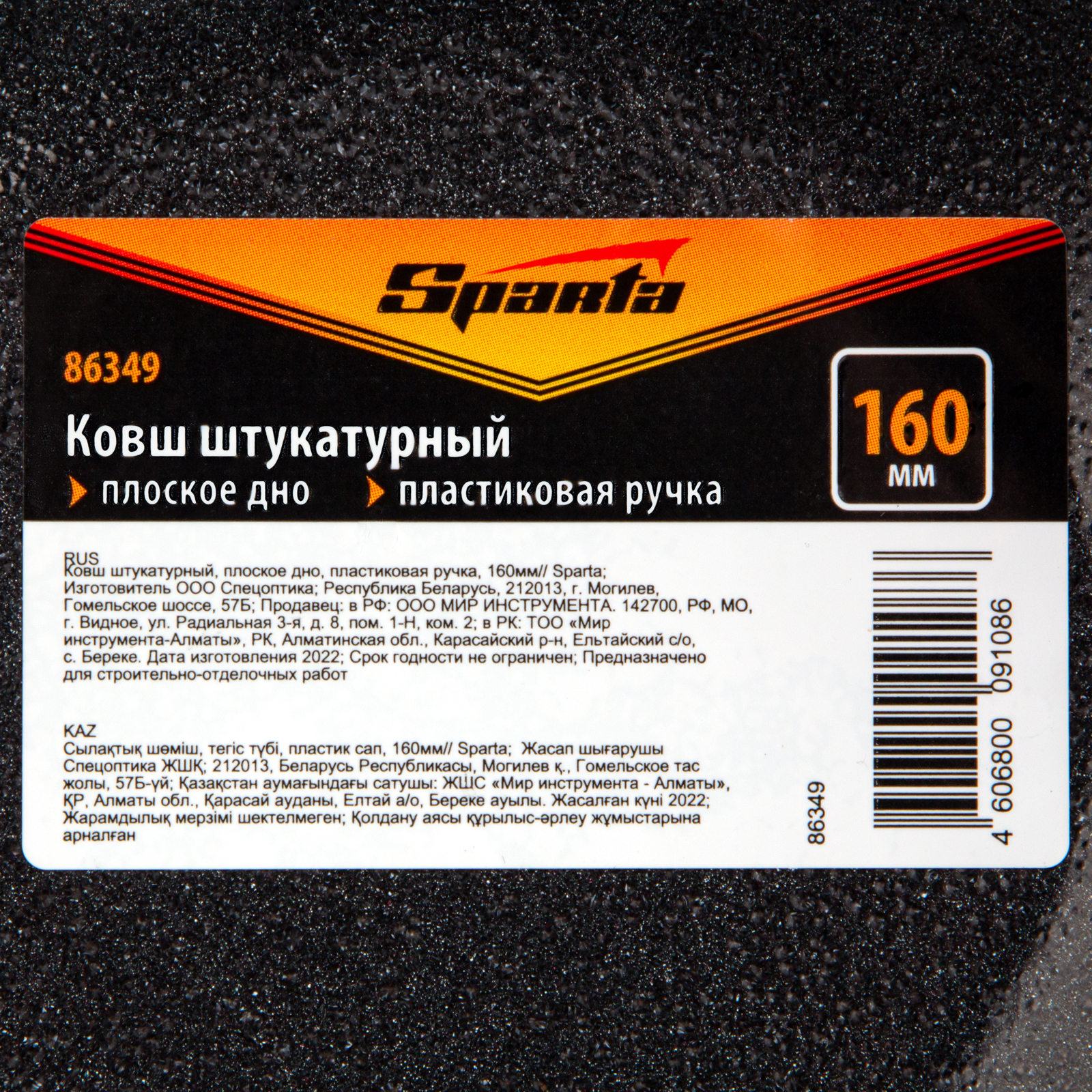 Ковш штукатурный, плоское дно, пластиковая ручка, 160мм Sparta в Екатеринбурге