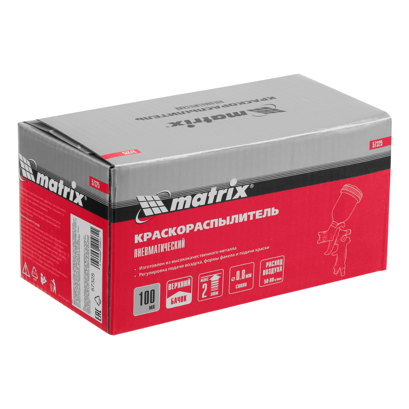 Краскораспылитель HVLP пневмат. с верхним бачком V= 0,1 л, сопло диаметром 0.8 мм Matrix в Екатеринбурге