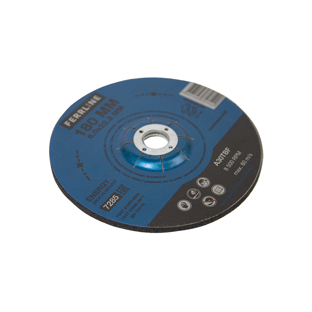 Шлифовальный диск FerrLine Energy 180 х 6,0 х 22,2 мм A30TBF – расходный материал для ручной угловой шлифовальной машины при работе с изделиями из чёрных металлов (чугуна). Диск предназначен для шлифовки и обдирки разных видов поверхностей, зачистки сварных швов, арматуры, профильных труб, стальных уголков, швеллера, удаления краски, ржавчины, обработки кромок. Поверхность куполообразного диска покрыта слоем абразивных частиц, скрепленных между собой бакелитовой связкой, и армирована одной стекловолоконной сеткой и тканой подложкой. Двойное металлическое кольцо обеспечивает плотную посадку на фланец УШМ, исключая биения и вибрацию при работе. Поставляется во влагозащитной упаковке. Особенность серии ENERGY - крупнозернистый абразивный состав высокой твёрдости для чёрных металлов на базе оксида алюминия. Не рекомендуется для работы с изделиями из нержавеющей стали.ИЗНОСОСТОЙКОСТЬ: Долгий срок службы диска - армирование одной стекловолоконной сеткой и нетканой подложкой плюс толщина связки 6 мм обеспечивают дополнительный запас прочности.УНИКАЛЬНЫЙ СОСТАВ: Технология производства включает в себя эксклюзивный рецепт абразива и смол: применение только твёрдых составов класса ВТ1, ВТ2, армирование сеткой из стекловолокна. Высокая твёрдость связывающей смолы позволяет сделать значительно большее количество съёма металла с заготовки по сравнению с кругами с обычным абразивом.ДВОЙНОЕ МЕТАЛЛИЧЕСКОЕ КОЛЬЦО: Двойное металлическое кольцо на диске обеспечивает плотную посадку на фланец УШМ, исключая биения и вибрацию при работе.ГЕРМЕТИЧНОСТЬ УПАКОВКИ: Диски упакованы в специальную термоусадочную герметичную плёнку, которая предохраняет от пыли и влаги при длительном хранении в условиях повышенной влажности, на строительных объектах и крупных промышленных производствах.ПРЕИМУЩЕСТВА:Для шлифовки изделий из черных металловКупольный профиль ТИП 27 – золотой стандарт для обдирочных и шлифовальных работНаиболее популярный посадочный диаметр 22,2 ммВысокая скорость обработкиКрупнозернистый абразив для лучшего зацепа при шлифованииТвёрдый состав абразиваВысокая износостойкостьДолгий срок службыКрупнозернистый абразив для лучшего зацепа при шлифованииСостав на базе оксида алюминияДвойное металлическое кольцо для плотной посадки на фланец УШМКОМПЛЕКТАЦИЯ: Круг для шлифования FerrLine Energy 180 х 6 х 22,2 мм A30TBF в термоусадочной плёнке со вкладышем – 5 шт.