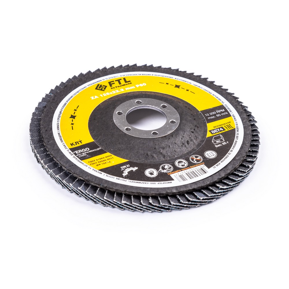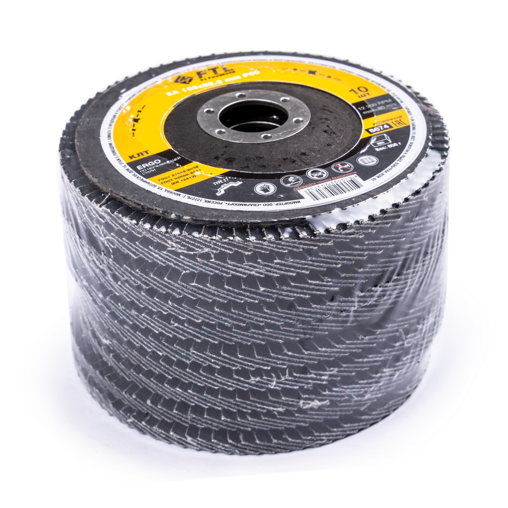 Круг лепестковый для шлифования по нержавеющей стали FTL Ergo цирконий 27 125 х 22,2 мм P60