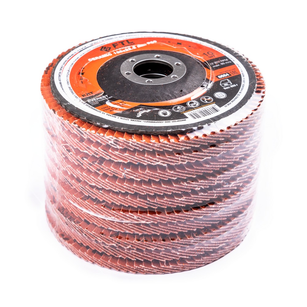 Лепестковый диск для шлифования по нержавеющей стали FTL Everest 27 125 х 22,2 мм P60 – это расходный материал для ручной угловой шлифовальной машины при работе с изделиями из нержавеющей стали, твёрдых сплавов, легированной стали. Диск предназначен для зачистки и шлифовки стальных заготовок, снятия усиления сварного шва, съёма металла, удаления окалины и заусенцев. Рабочая поверхность плоского диска ровная и в основном применяется для обработки плоскости и внешних угловых соединений. Оптимальный угол работы для плоского КЛТ – от 0° до 15°. Плоские КЛТ лучше всего подходят для подготовки поверхности и финишной обработки. Удаление материала и финиш происходят за один шаг, что снижает время обработки. Серия EVEREST — это премиальный инновационный керамический абразив для работы исключительно по изделиям из нержавеющей стали. Электростатический метод нанесения обеспечивает расположение всех абразивных зёрен острыми режущими кромками вверх, перпендикулярно основе. В процессе работы керамические зёрна постоянно сохраняют острую режущую кромку, а отличная теплопроводность керамики наиболее эффективно предотвращает перегрев, что также увеличивает время работы абразива.ИЗНОСОСТОЙКОСТЬ: Благодаря премиальной формуле режущая и шлифовальная способность абразива снижается в процессе работы значительно медленнее, позволяя выполнить больше работы.ЭФФЕКТИВНАЯ РАБОТА С СИЛЬНЫМ ПРИЖИМОМ: Машинная сборка при производстве исключает ошибки при наклеивании лепестков на основание диска, а плотная набивка обеспечивает более сильный прижим во время работы.САМОЗАТАЧИВАЮЩИЙСЯ АБРАЗИВ: Зёрна керамики состоят из ещё более многочисленных и мелких кристаллов по сравнению с оксидом циркония, что обеспечивает ярко выраженный эффект самозатачивания и скалывания в процессе работы. Керамические зёрна постоянно сохраняют острую режущую кромку, а отличная теплопроводность керамики предотвращает перегрев, что также увеличивает время работы абразива. По некоторым исследованиям, керамическое зерно работает в 2 раза агрессивнее, и в 10 раз дольше. чем оксид алюминия.ПРЕМИАЛЬНЫЙ КЕРАМИЧЕСКИЙ АБРАЗИВ: Премиальный компаунд на базе керамического абразива сохраняет остроту режущих кромок до полного износа, не перегревается даже при сильном прижиме и обладает эффектом самозатачивания.ДВОЙНОЕ МЕТАЛЛИЧЕСКОЕ КОЛЬЦО: Двойное металлическое кольцо на диске обеспечивает плотную посадку на фланец УШМ, исключая биения и вибрацию при работе.ПРЕИМУЩЕСТВА:По нержавеющей стали (!)Керамический абразив (лучший по износостойкости и теплопроводности)Минимальное содержание железа, серы, хлораТип 27 (куполообразный, с плоской поверхностью)Электростатический метод нанесения абразиваНаилучший эффект самозатачиванияВозможность работы с большим прижимом (требуется мощная УШМ)Двойное металлическое кольцо для плотной посадки на фланец УШМДвойная влагозащитная упаковкаФУНКЦИОНАЛЬНЫЕ ОСОБЕННОСТИ:ГЕРМЕТИЧНОСТЬ УПАКОВКИ: Диски упакованы в специальную термоусадочную герметичную плёнку, которая предохраняет от пыли и влаги при длительном хранении в условиях повышенной влажности, на строительных объектах и крупных промышленных производствах.КОМПЛЕКТАЦИЯ: Круг лепестковый для шлифования по нержавеющей стали FTL Everest 27 125 х 22,2 мм P60 в термоусадочной плёнке со вкладышем