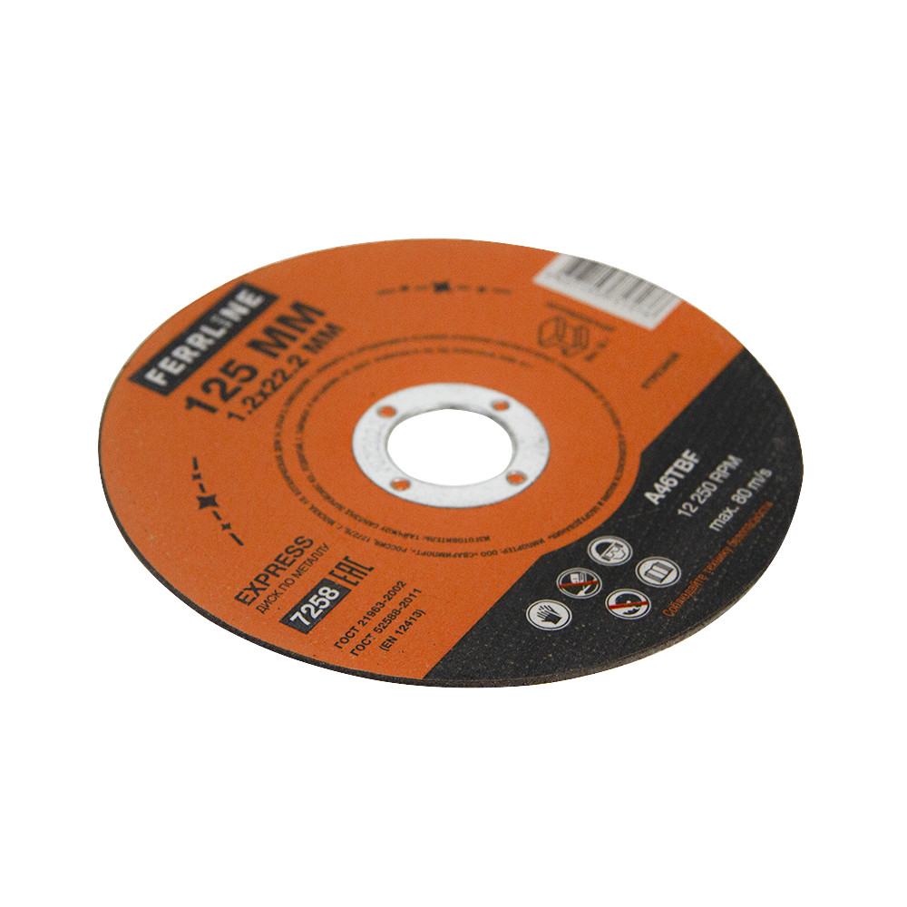 • Круг отрезной по металлу FerrLine Express 125 х 1,2 х 22,2 мм A46TBF купить в Москве с доставкой по всей России | ProtosMarket.ru
