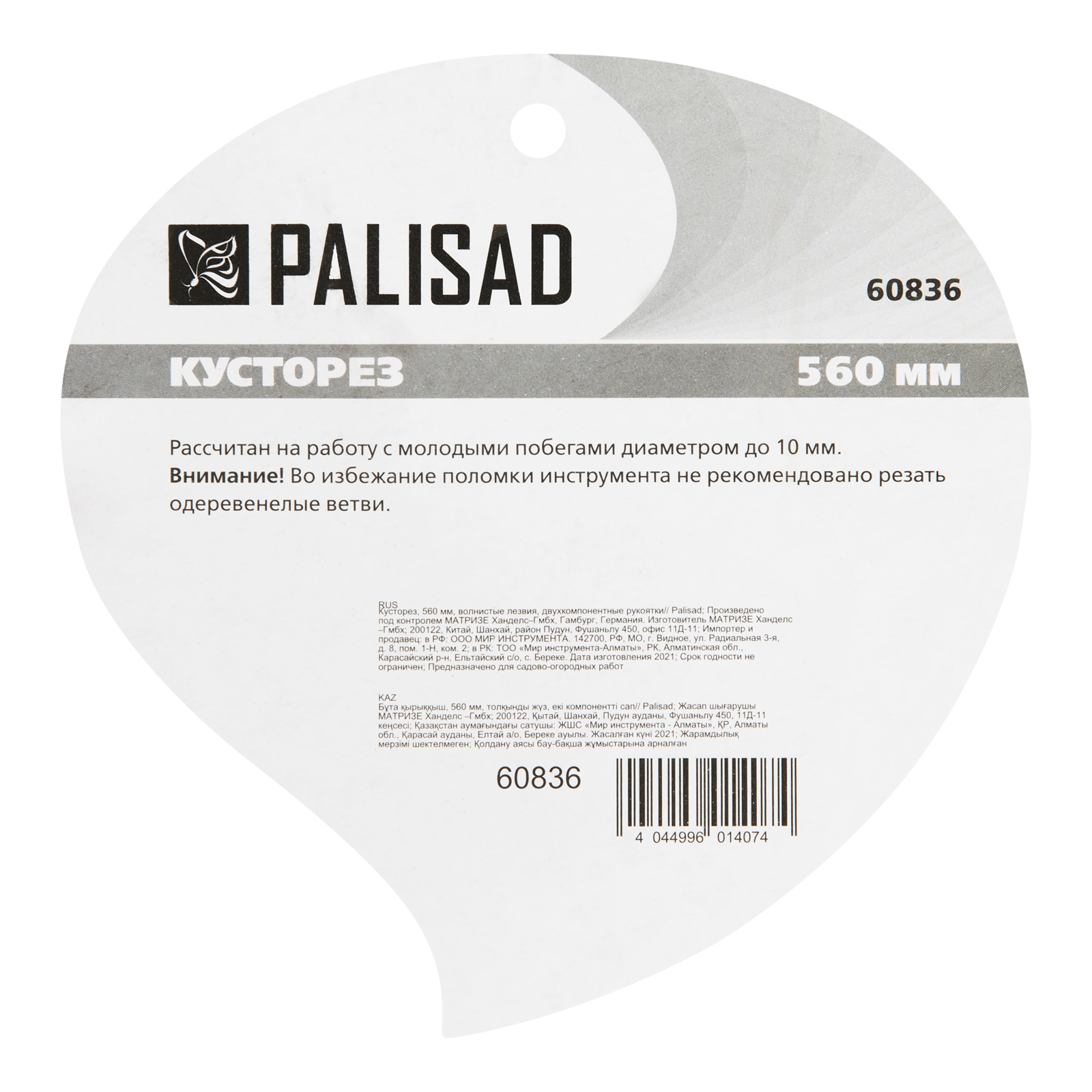 Кусторез Palisad 60836 длиной 560 мм, с волнистыми лезвиями и двухкомпонентными рукоятками, позволяет провести омолаживающую обрезку молодых побегов толщиной до 10 мм. С его помощью можно ухаживать за кустарниками и живой изгородью. Тефлоновое покрытие основного лезвия обеспечивает легкость реза. Волнистые кромки надежно удерживают ветки, поэтому инструмент подходит для подравнивания побегов с гладкой корой.