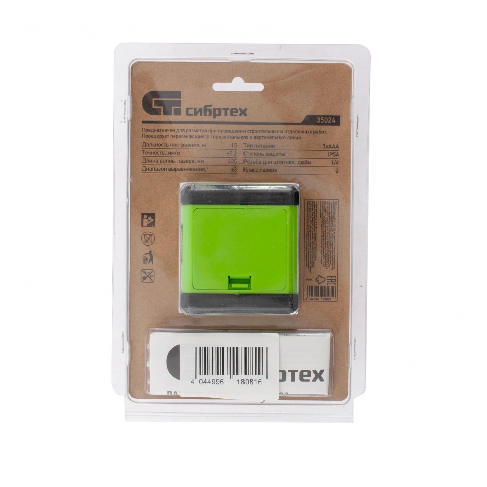 Лазерный уровень Сибртех ЛН 02 35024 с резьбой 1/4″ проецирует красный луч с длиной волны 635 Нм в вертикальной и горизонтальной плоскости на расстояние до 15 м. Используется во время отделки стен, укладки плитки, монтажа выключателей, установки полок и стеллажей, а также проведения других работ в закрытых помещениях.