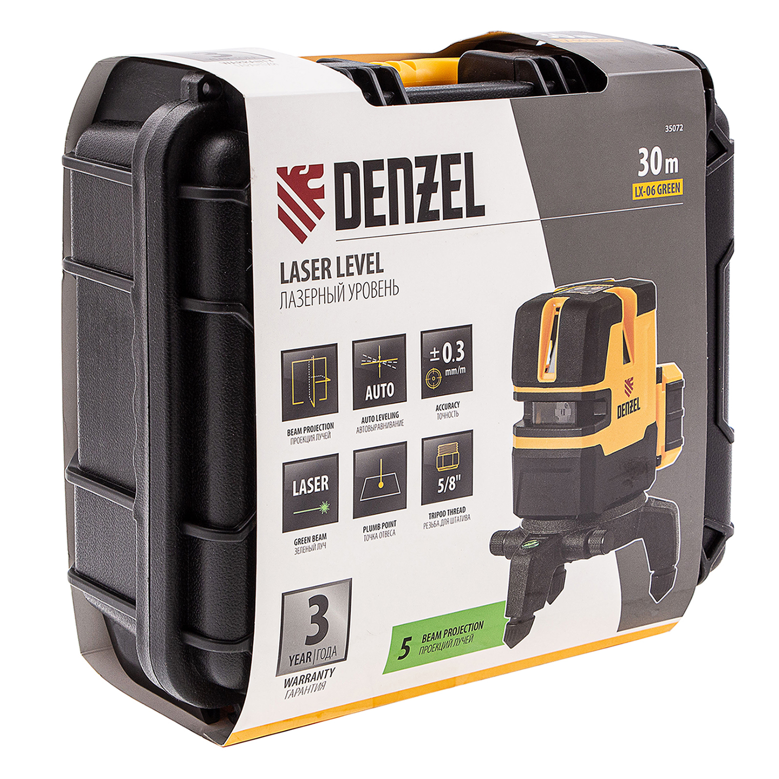 Лазерный уровень LX 06 Green, 30 м, 520 нм, аккумулятор Li 5200 mAh, резьба 5/8" Denzel в Екатеринбурге