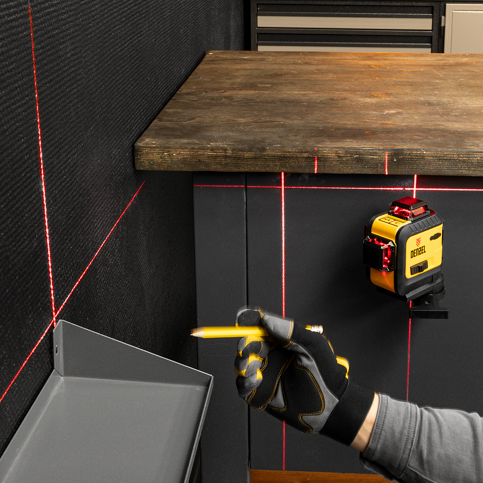 Мультипризменный лазерный уровень Denzel LX 360-3 Red 35077 с резьбой 5/8" под штатив работает от аккумулятора Li-Ion 2800 мАч и проецирует горизонтальные и вертикальные линии с охватом 360° на расстояние до 30 м при помощи лазерных лучей длиной 635 нм. Используется для разметки поверхностей в ходе строительных и отделочных работ.