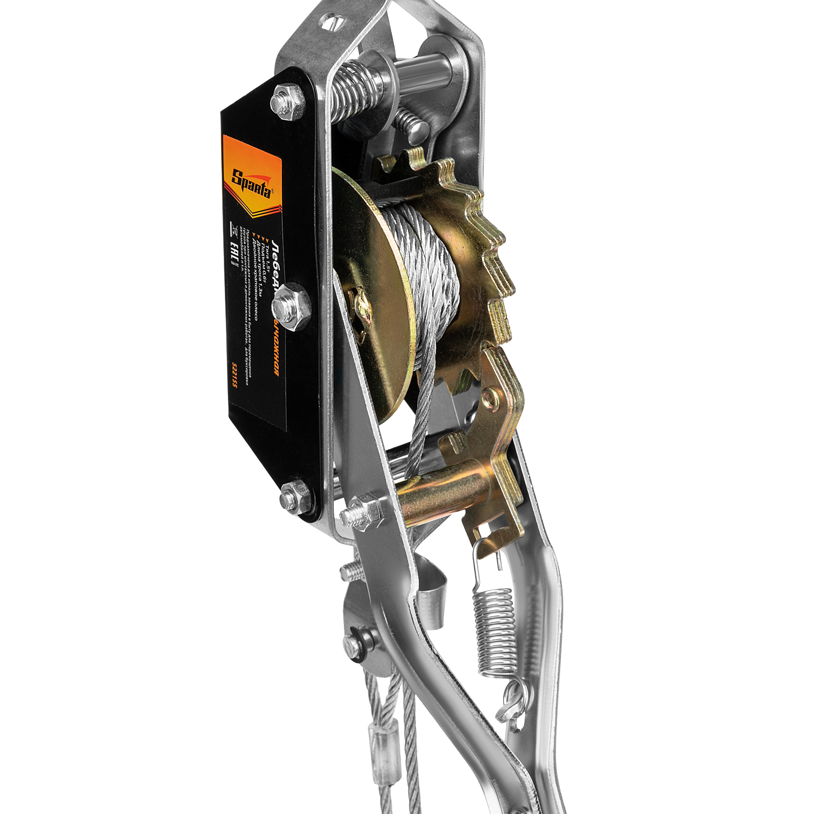 Рычажная лебедка Sparta 522155, тяга - 1,5 т, подъем - 0,6 т, с одинарным храповым колесом, используется для поднятия и передвижения грузов в вертикальной, горизонтальной и наклонной плоскости. Это незаменимое устройство для автомобилистов, используемое при необходимости эвакуации авто. Также она пригодится в быту в процессе погрузочных работ. Рычажный механизм не требует больших физических усилий от оператора.