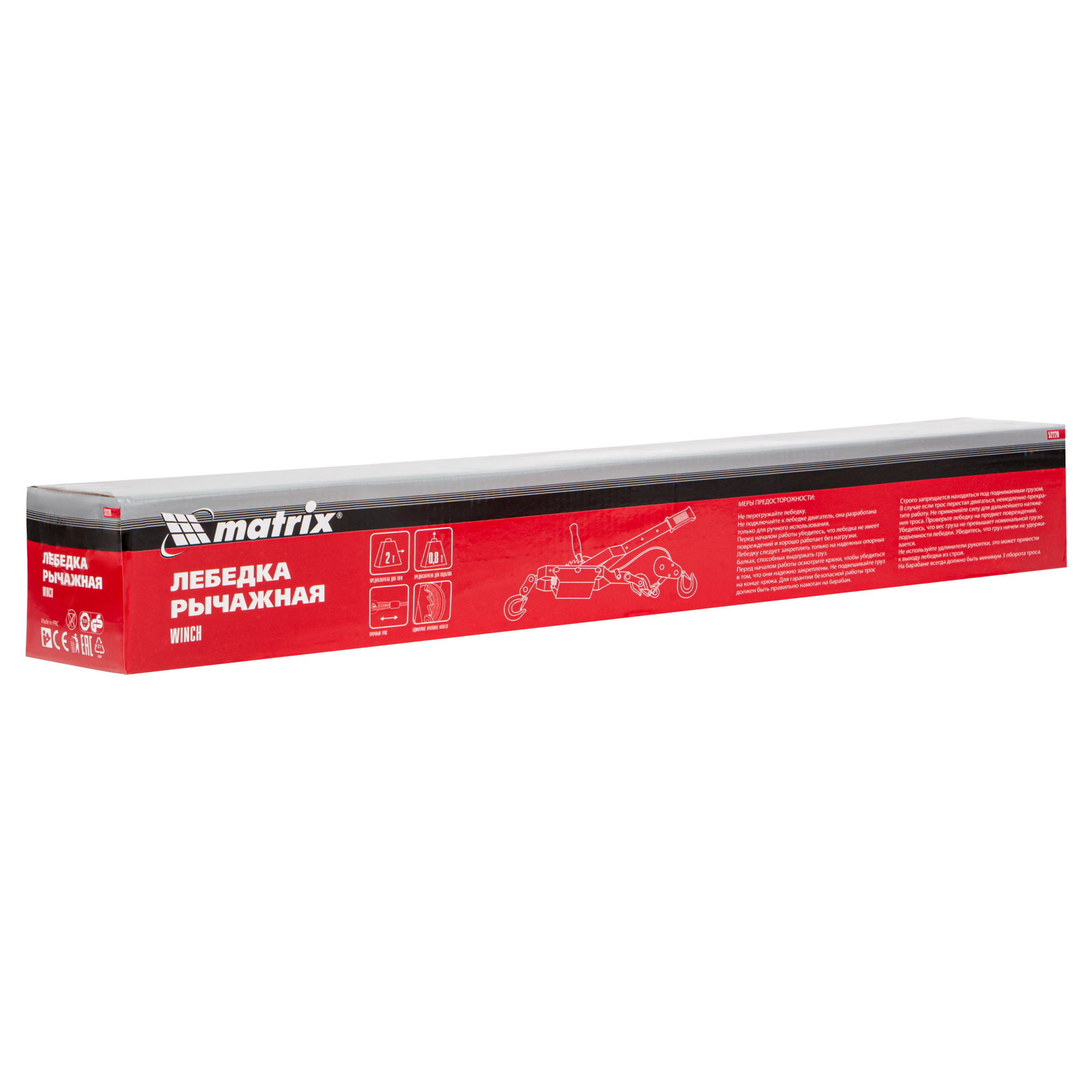 Лебедка рычажная, тяга 2 т, подъем 0.8 т, одинарное храповое колесо Matrix в Екатеринбурге
