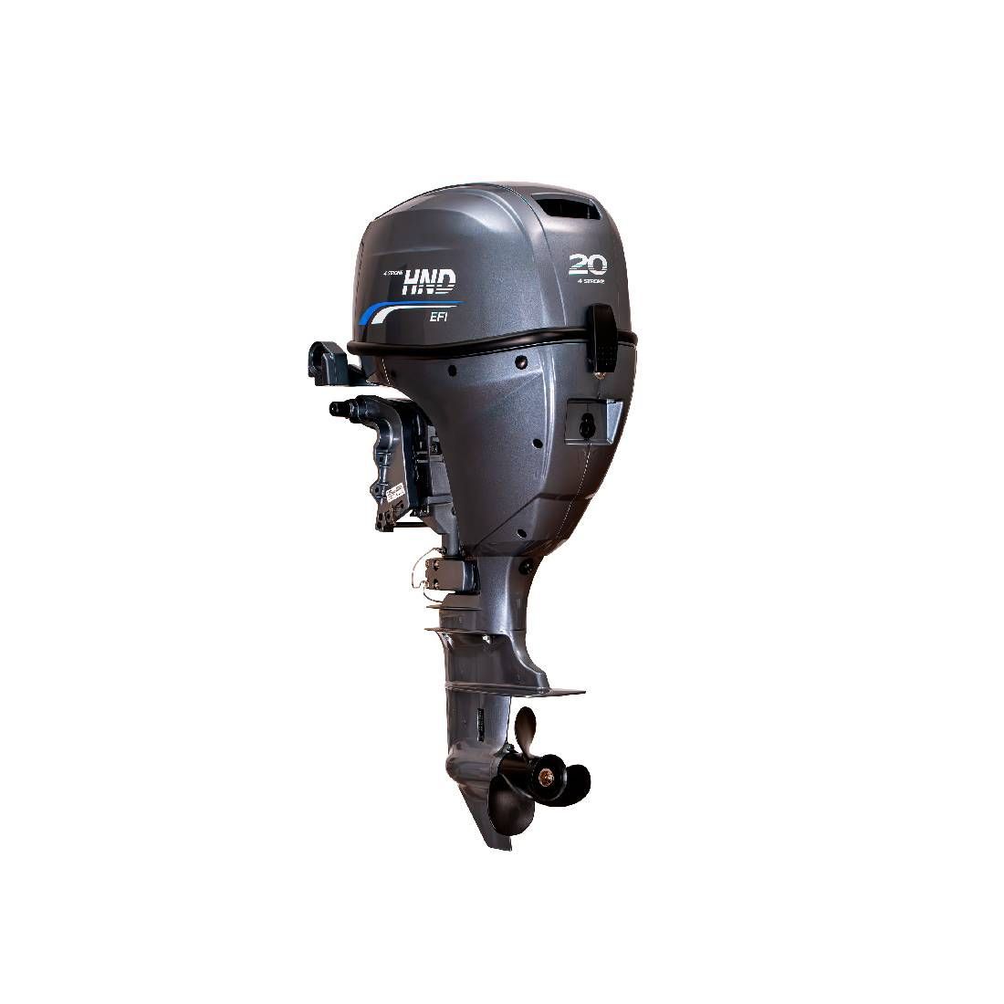 HND OB 20 FIERS оснащен дистанционным типом управления с электростартером и коротким дейдвудом. Топливным баком емкостью 12 литров для комфортной заправки и водяным охлаждением лодочного мотора. Вращение гребного винта стандартное.