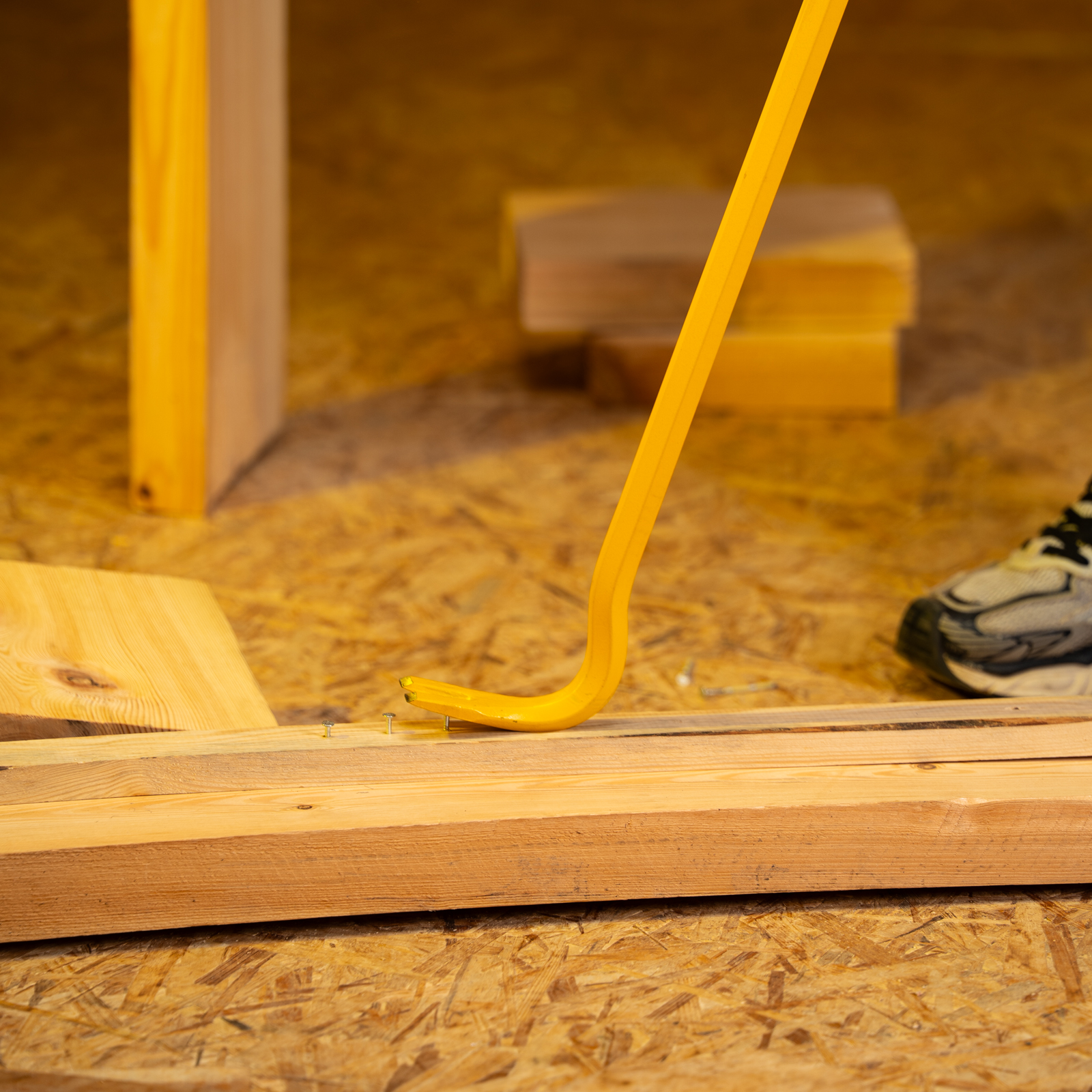 - Яркий цвет — лом-гвоздодер хорошо заметен среди других инструментов.
