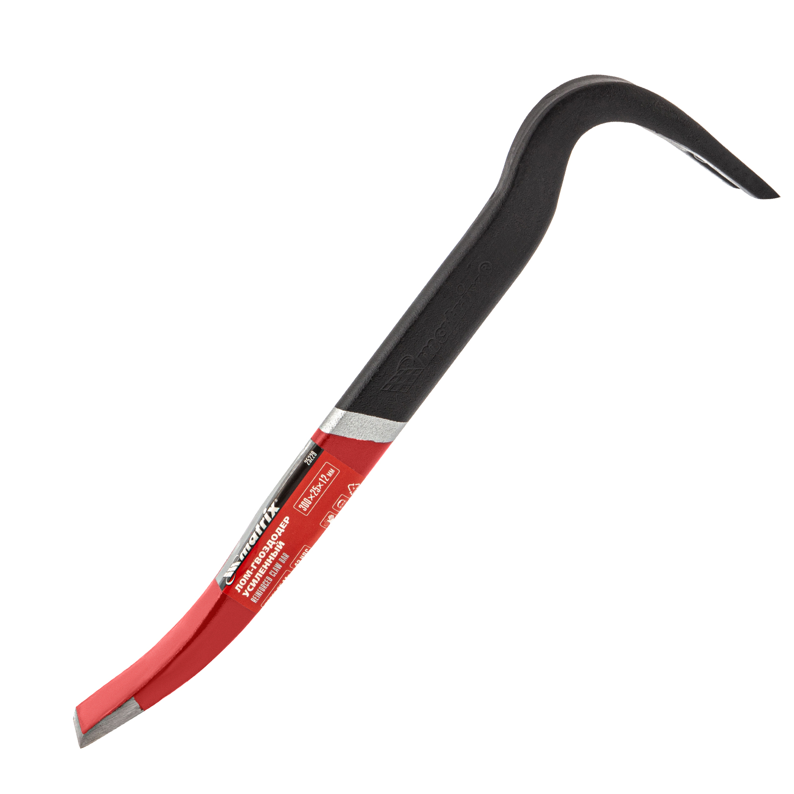 Усиленный лом-гвоздодер Matrix 25229, 300х25х12 мм, предназначен для демонтажа различных конструкций. Им можно извлекать гвозди, разбирать ограждения и деревянную тару, демонтировать старую обшивку стен или крыши. Тело инструмента имеет овальную форму, поэтому выдерживает повышенные нагрузки. Лом-гвоздодер необходим на строительной площадке, пригодится также и в быту.
