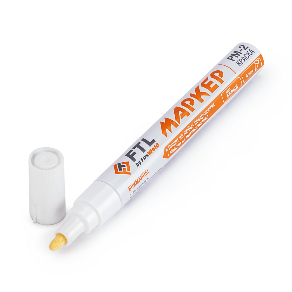 Маркер-краска FTL PM-2 БЕЛЫЙ 4мм - высокопрофессиональный маркер на нитрооснове для работ в трудных индустриальных условиях.