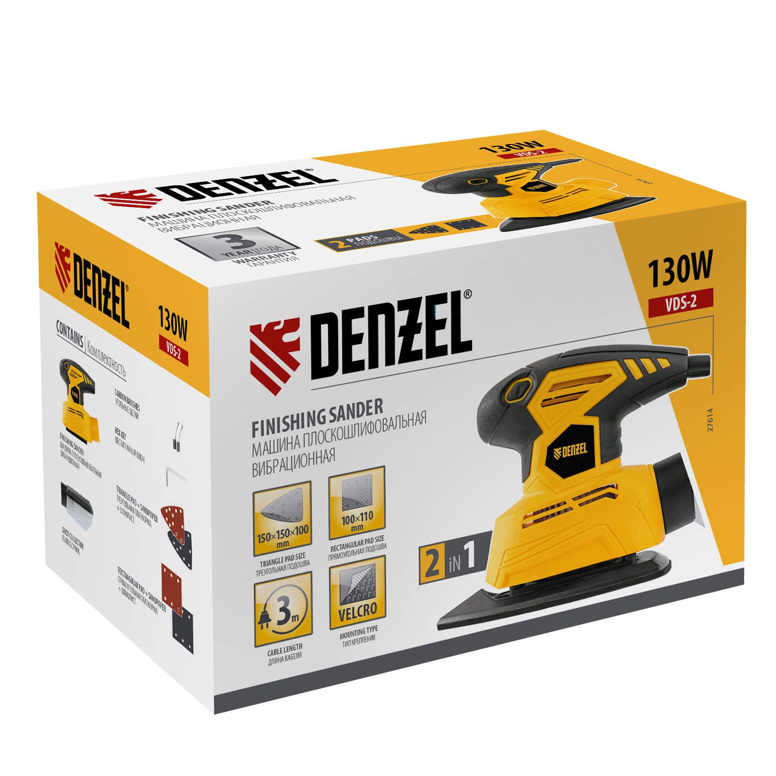Машина плоскошлифовальная вибрационная 2 в 1 VDS-2, 130 Вт, 14000 об/мин Denzel в Екатеринбурге