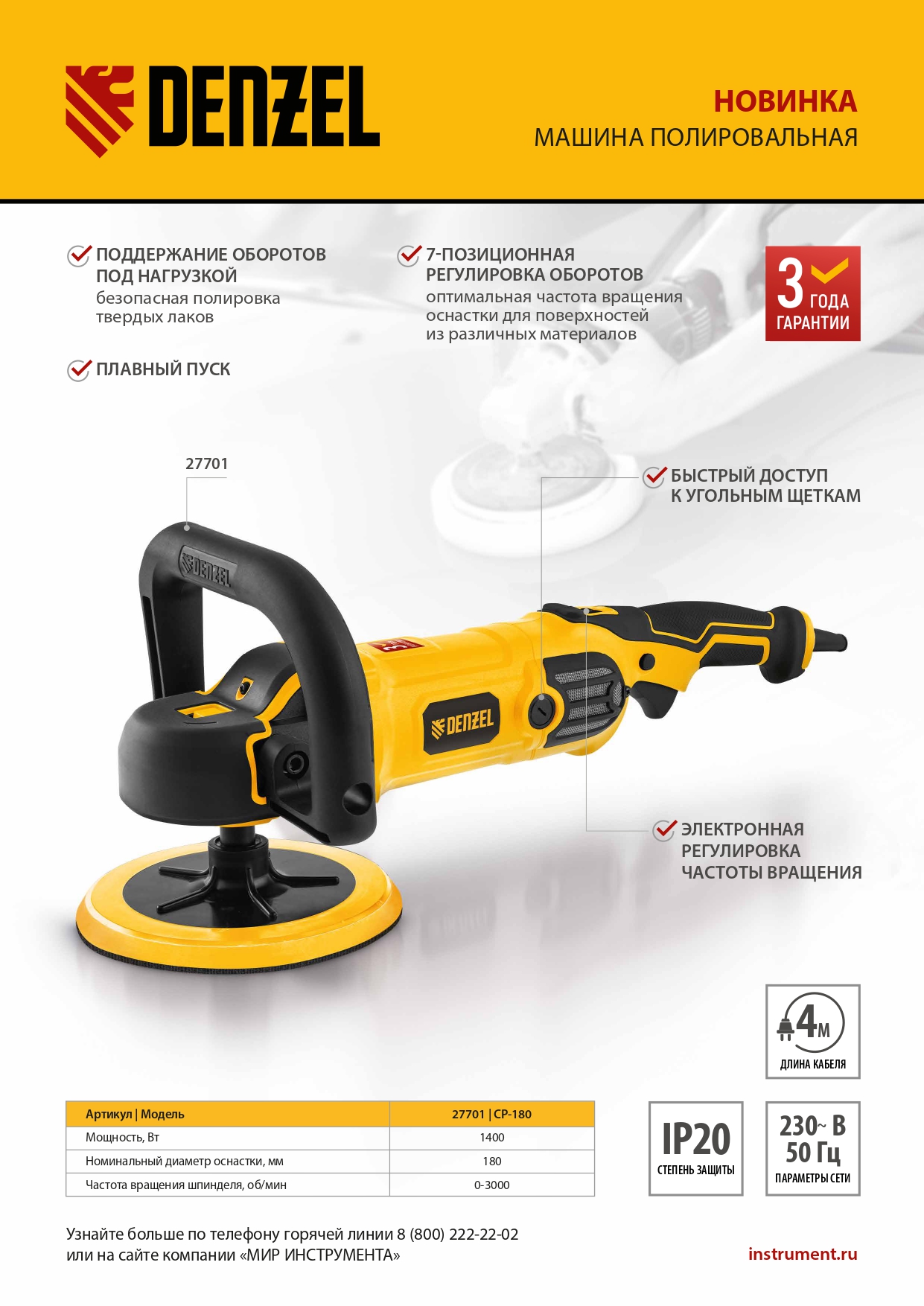 Машина полировальная CP-180, 1400 Вт, 180 мм, 0-3000 об/мин Denzel в Екатеринбурге