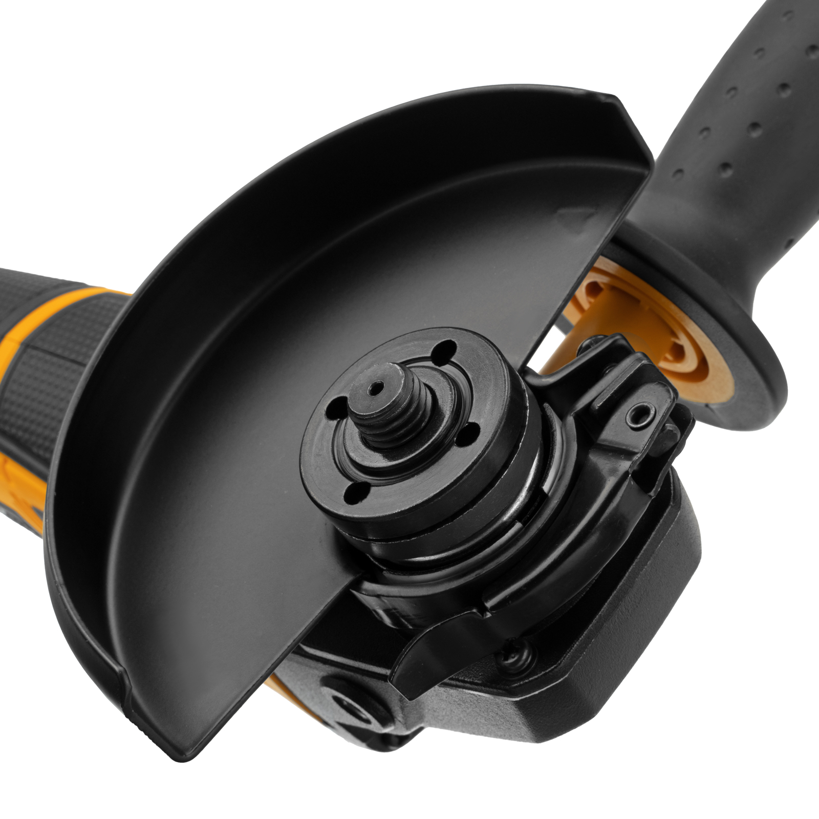 - Быстрая замена оснастки — конструкцией предусмотрена блокировка шпинделя и бесключевое крепление защитного кожуха.