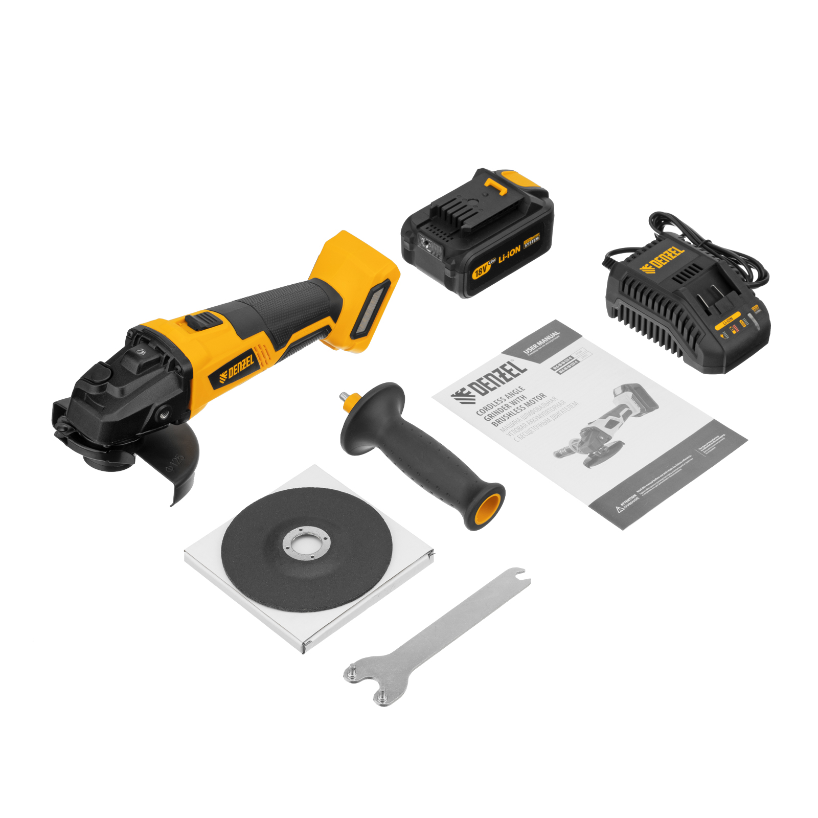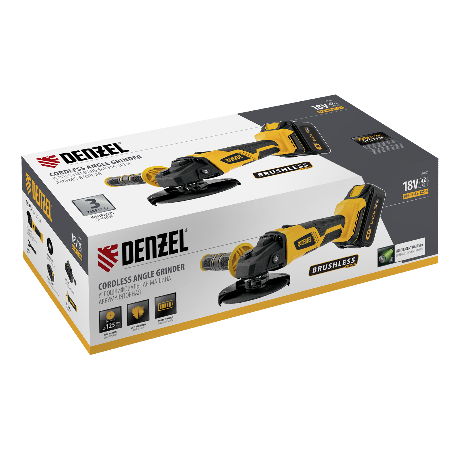 Машина углошлифовальная аккумуляторная бесщет. BLG-IB-18-125-4, Li-ion, 18 В Denzel в Екатеринбурге