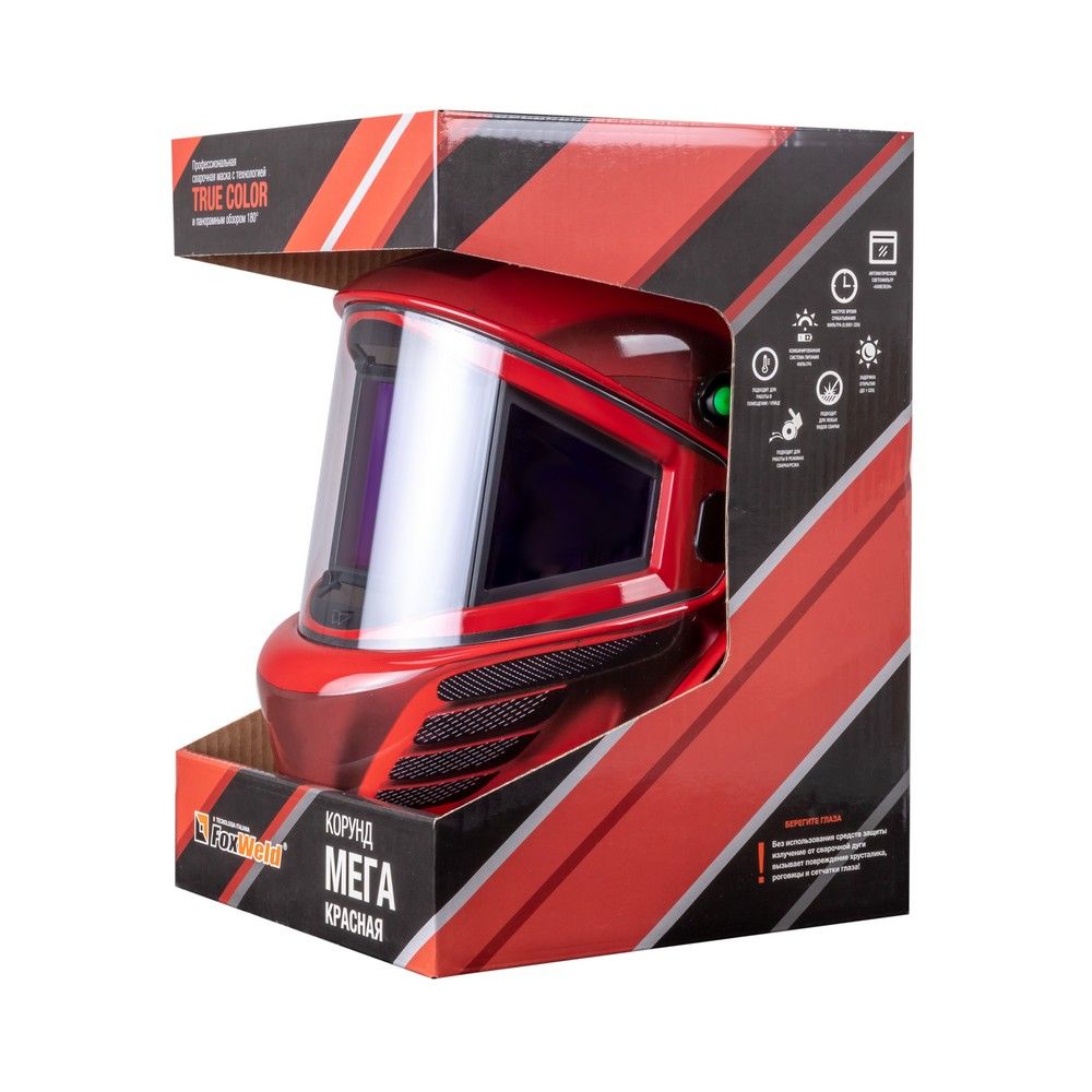 Маска сварщика КОРУНД МЕГА красная (ф-р MEGA LED) в коробке в Екатеринбурге