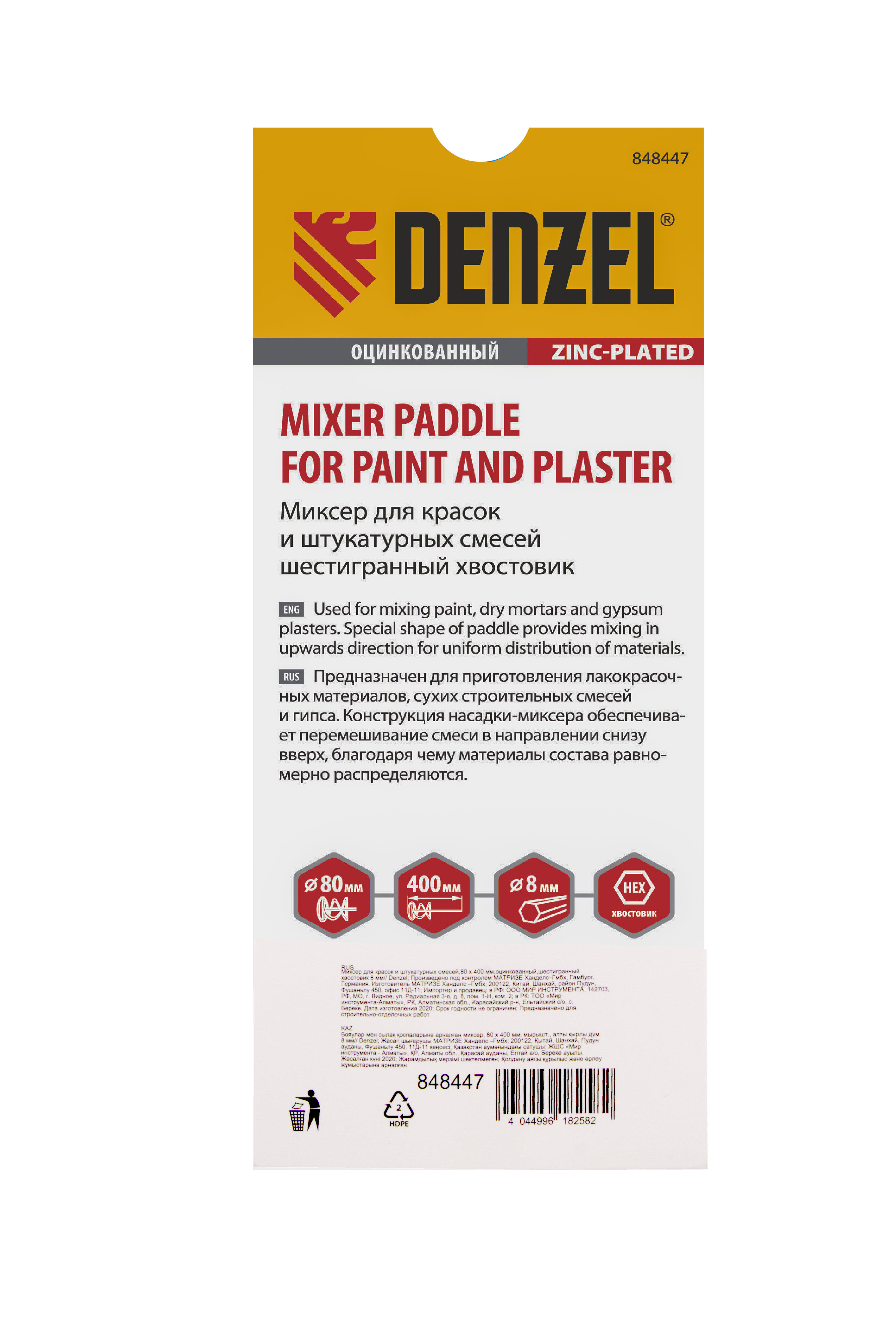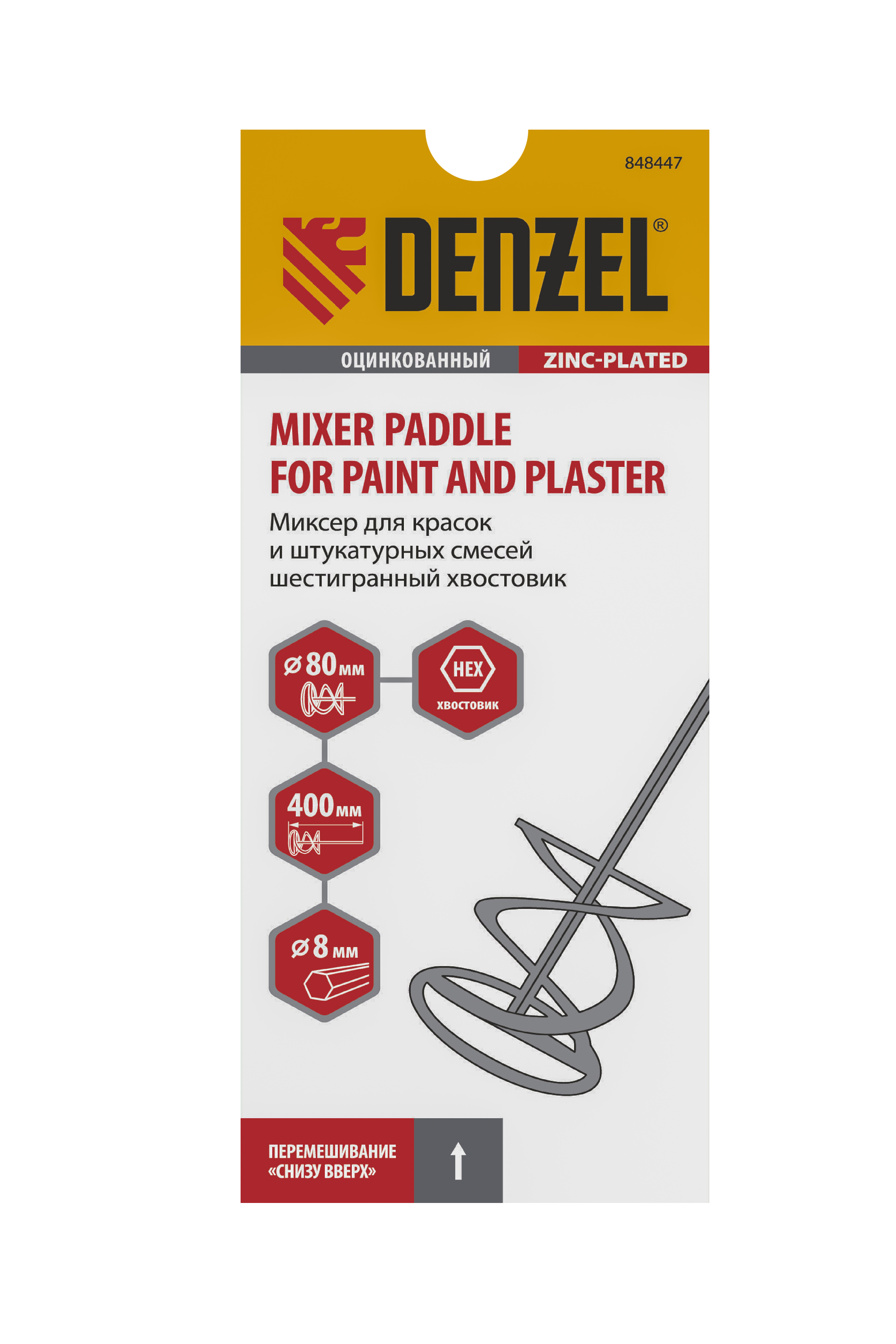 Миксер для красок и штукатурных смесей, 80 х 400 мм, оцинкованный, шестигранный хвостовик 8 мм Denzel в Екатеринбурге