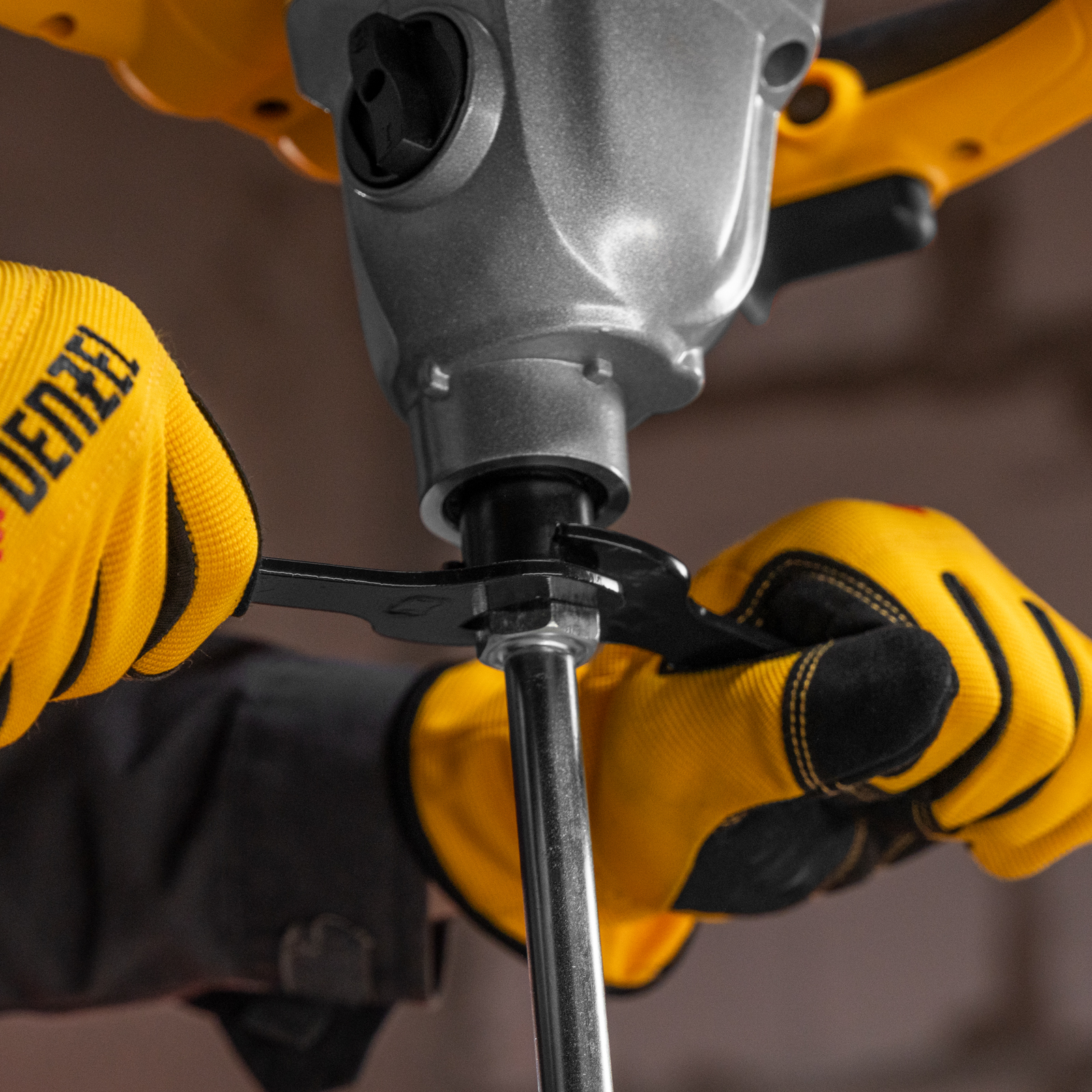 - Диаметр оснастки 160 мм — строительные компоненты смешиваются равномерно, двигатель не перегружается.