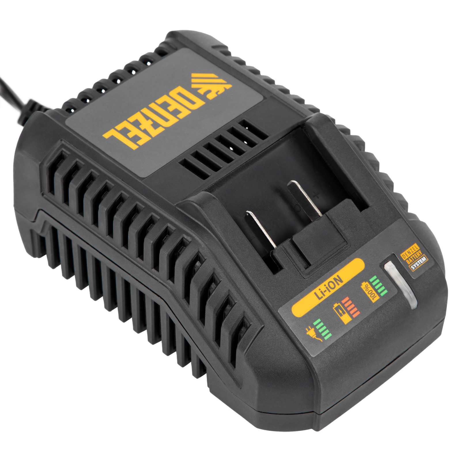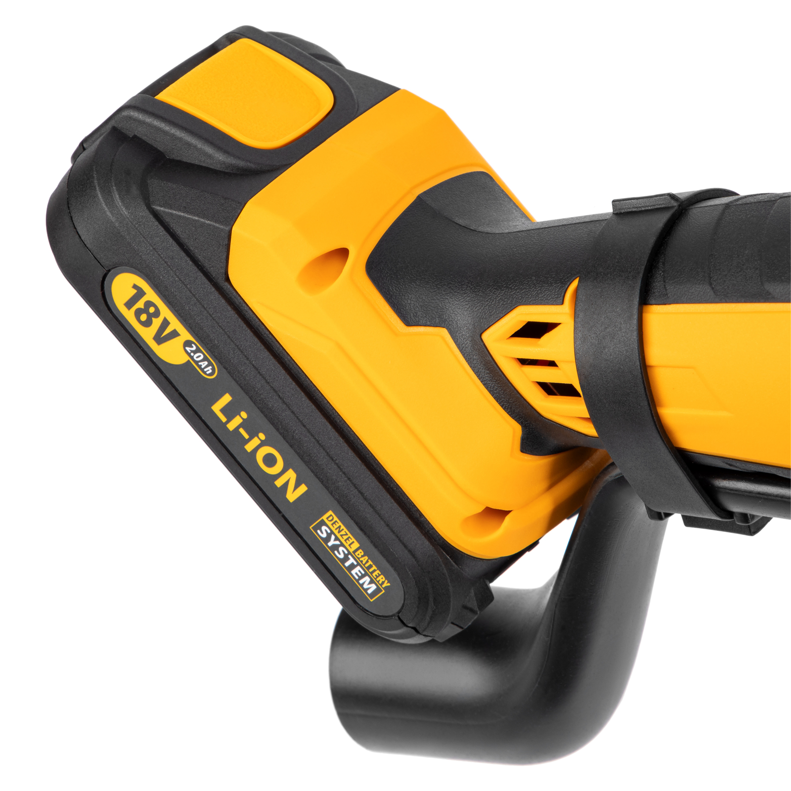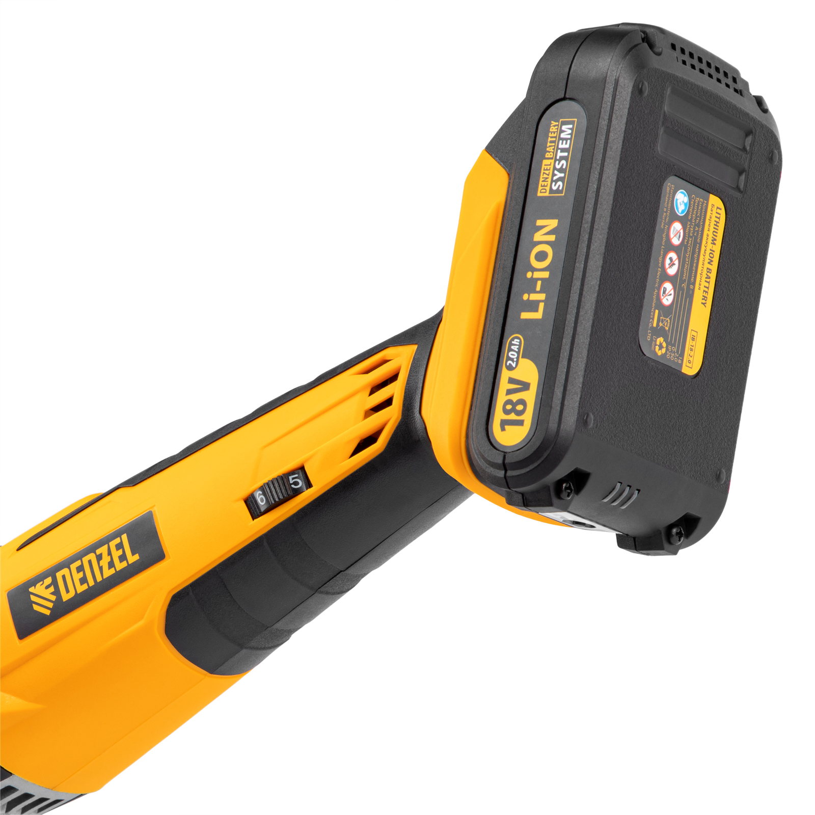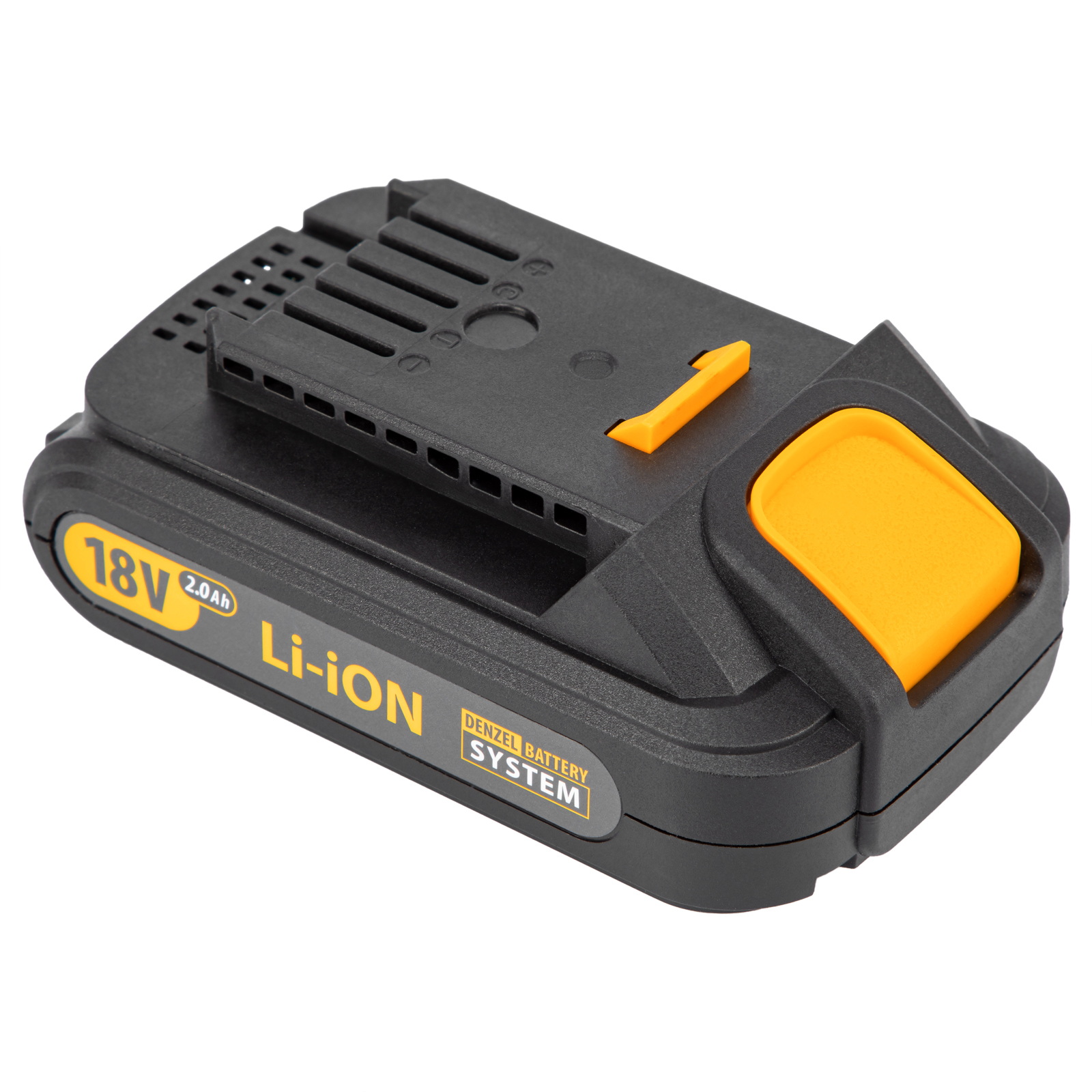 - Универсальность — аккумуляторная батарея Li-ion емкостью 2 Ач совместима с любым инструментом из модельного ряда единой платформы Denzel Battery System 18V.